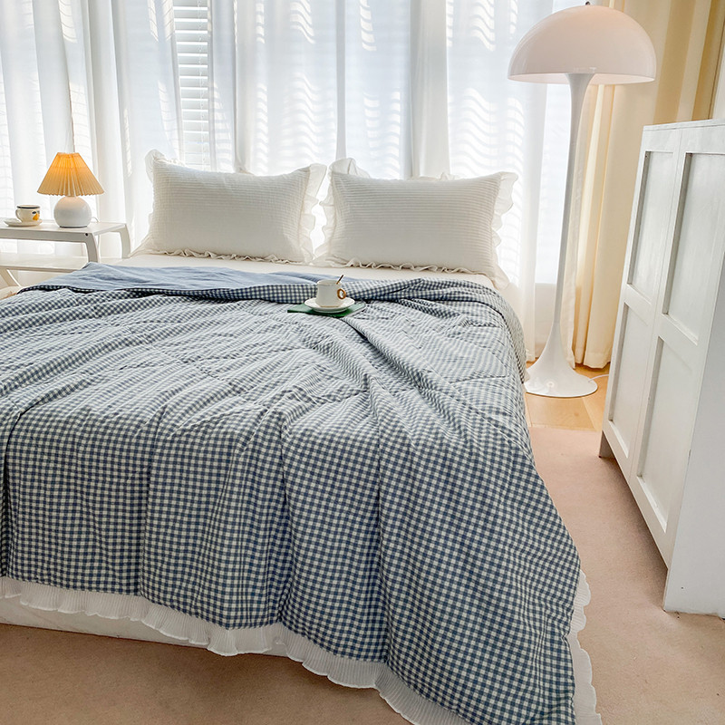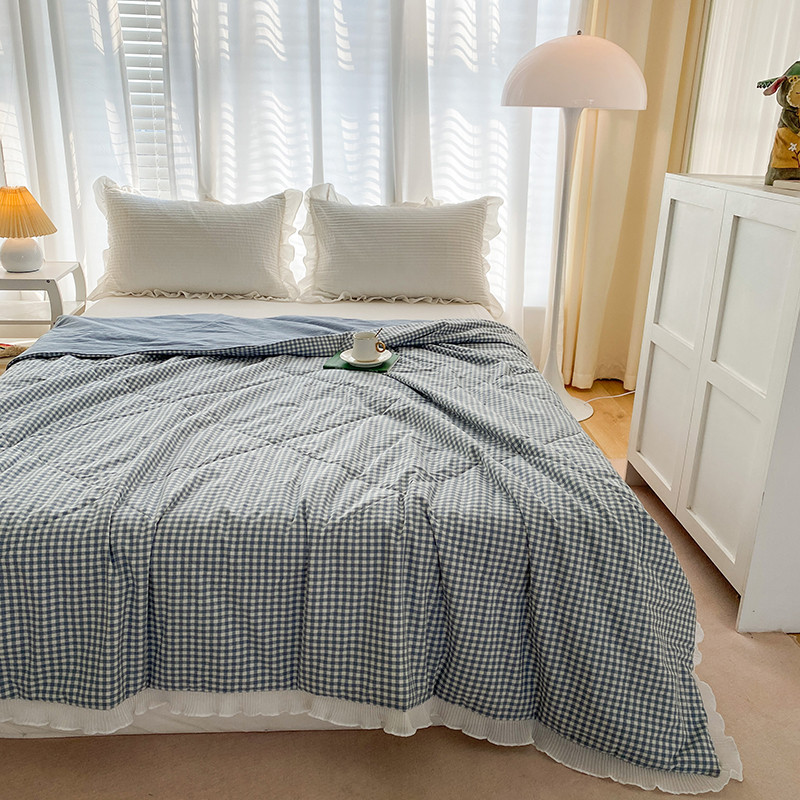 珺柔家纺 2022新款全棉色织提花夏凉被 蓝格