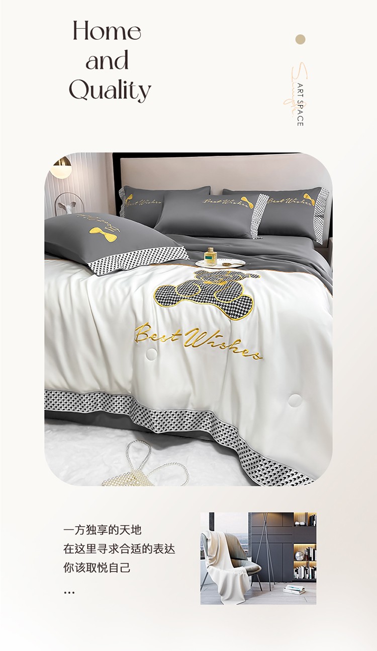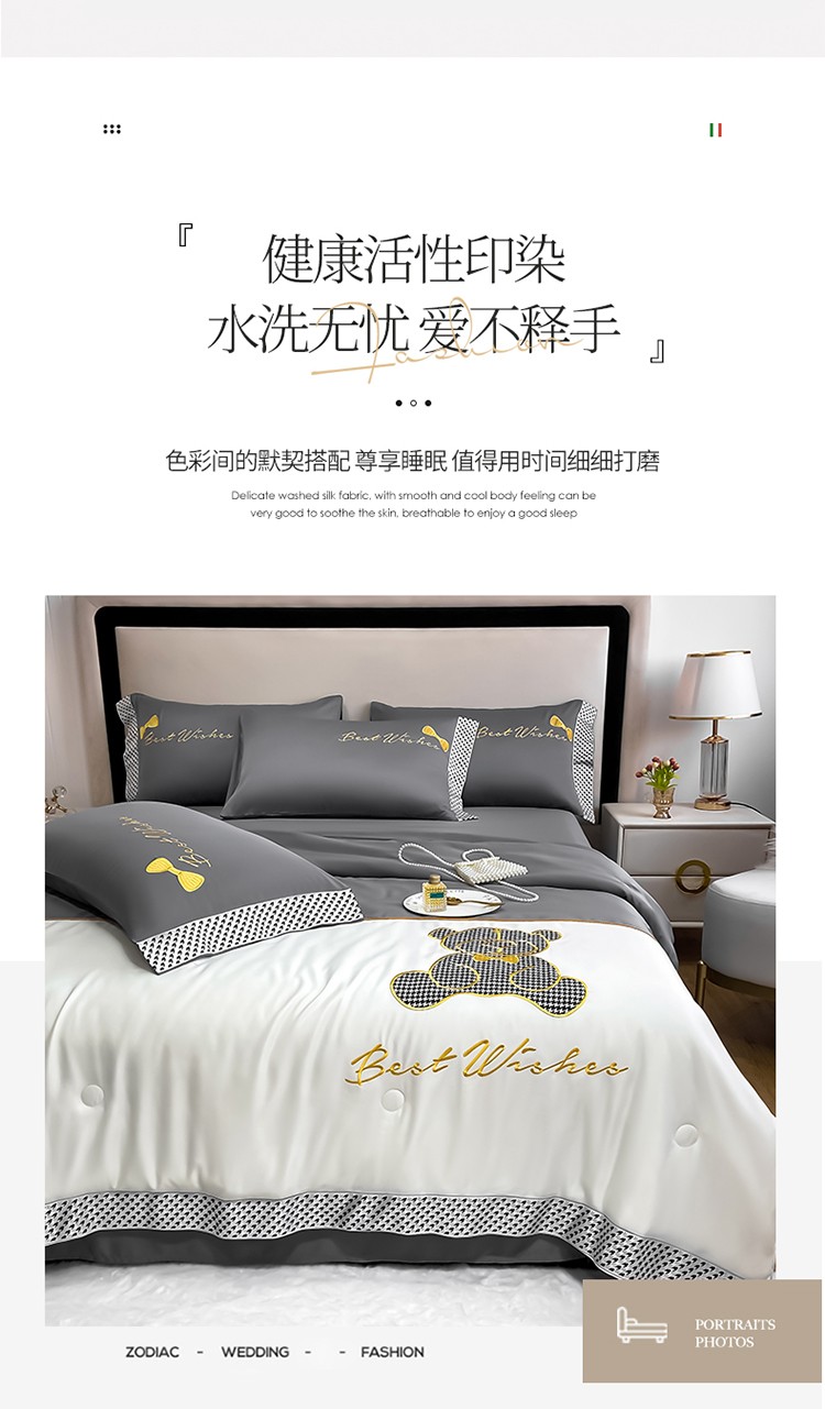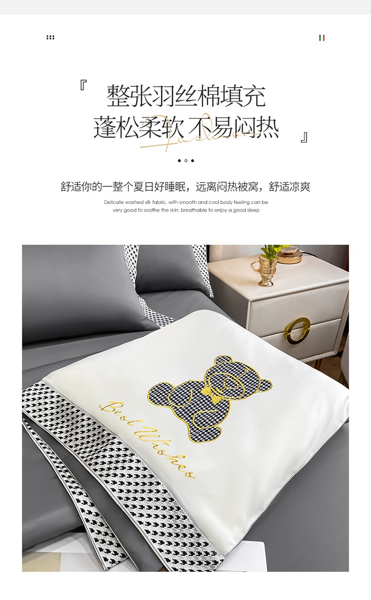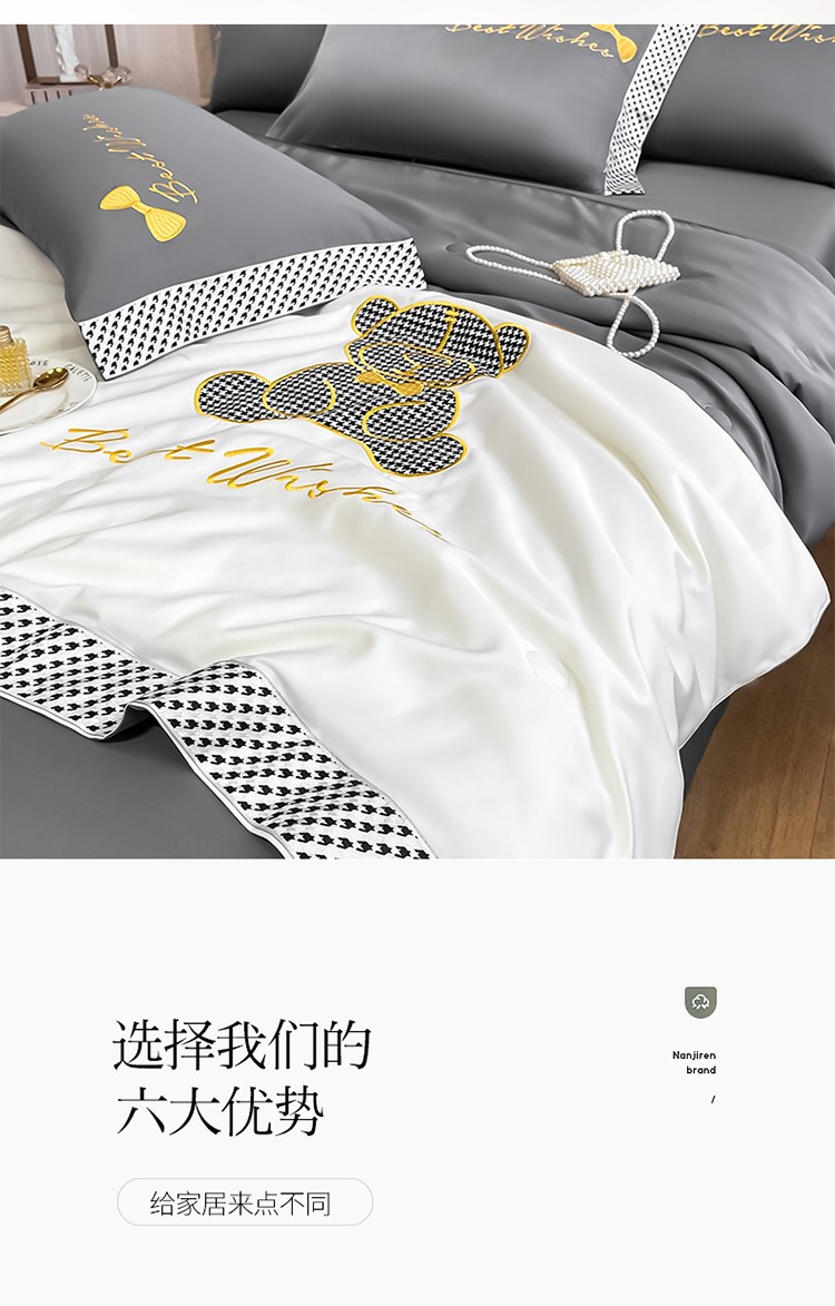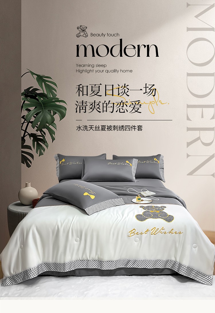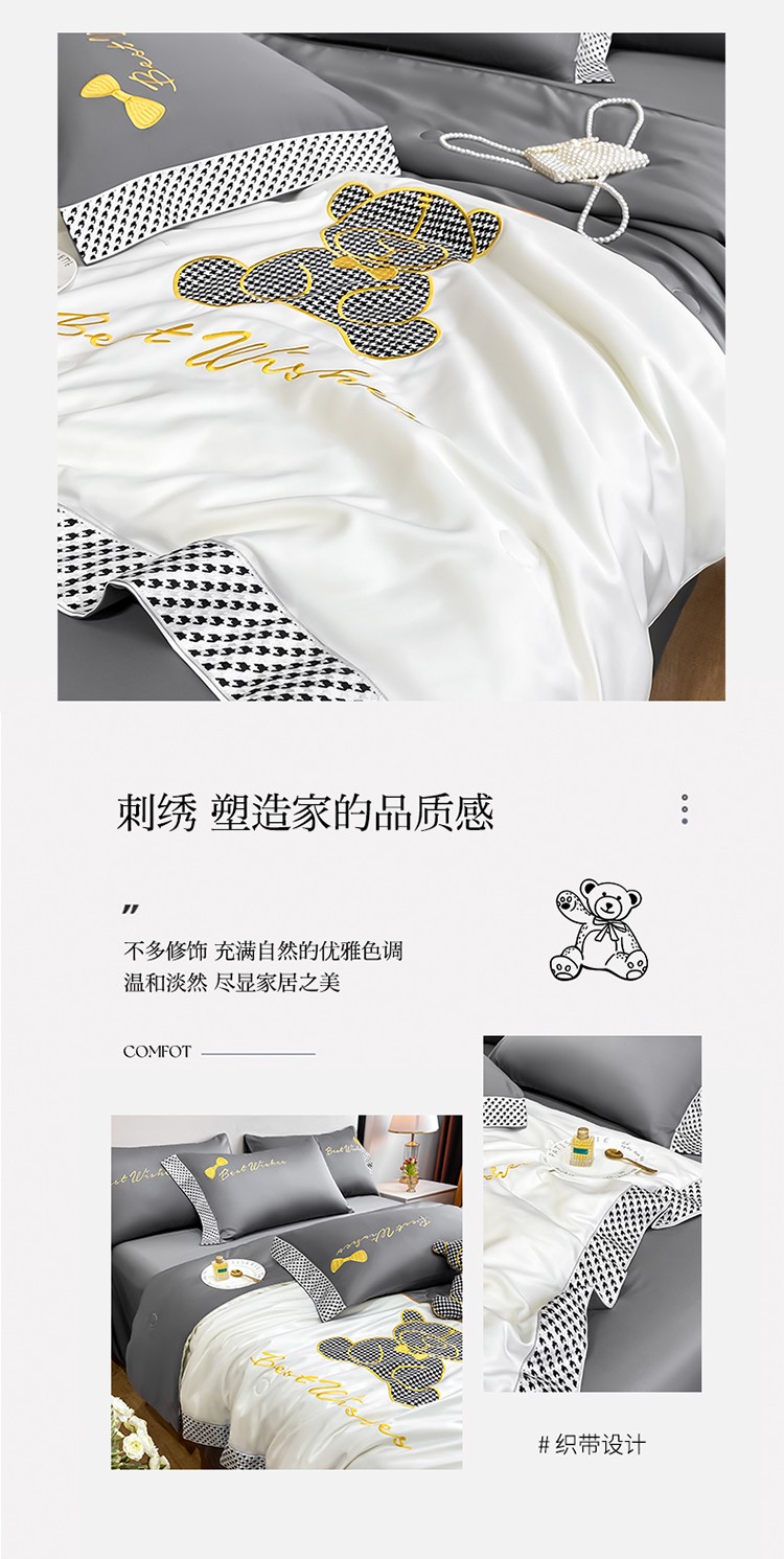 眠帛家居 2022新款元气熊刺绣夏被四件套 元气熊灰