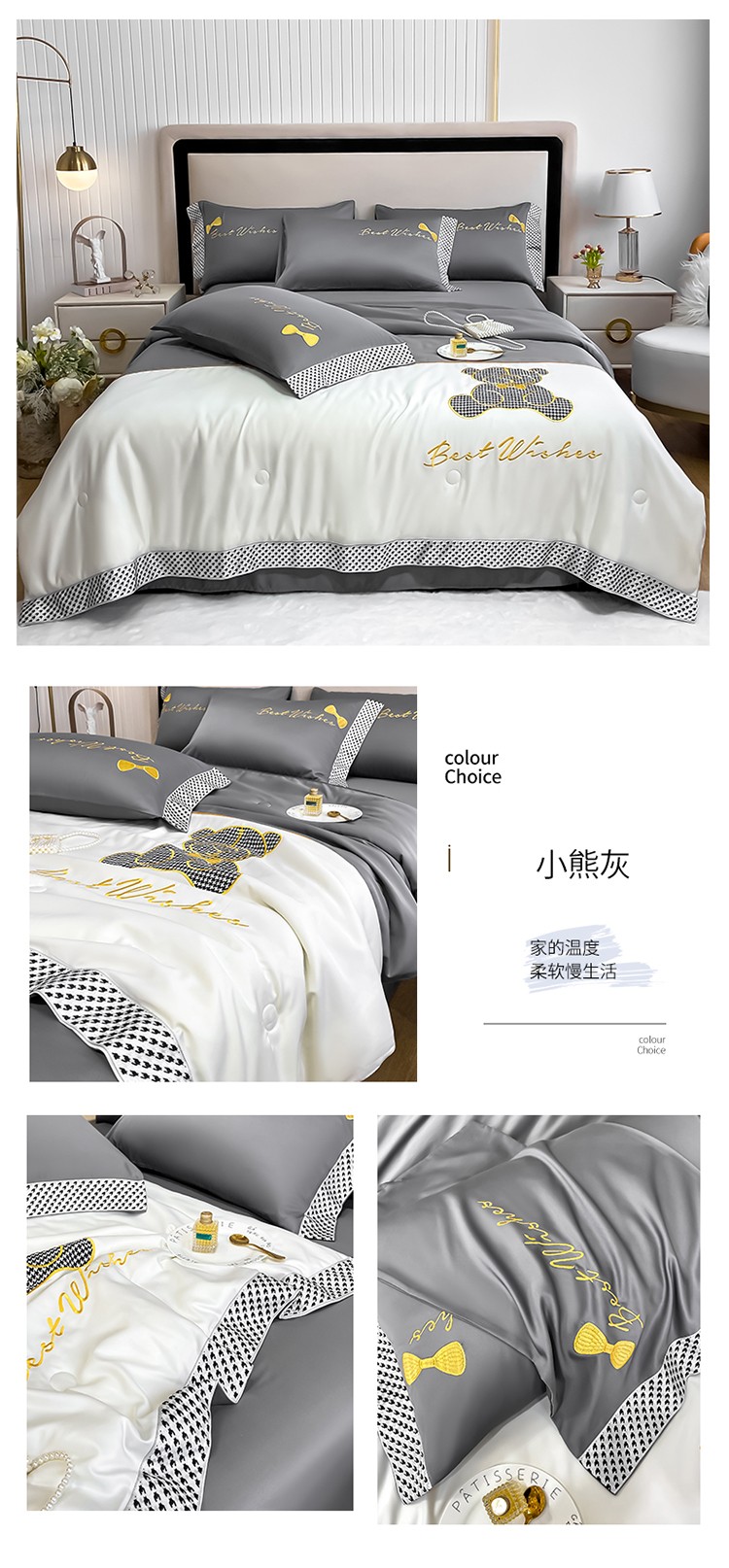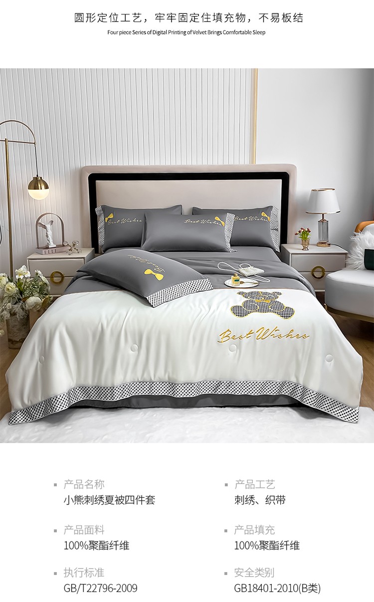 商品名称:眠帛家居 2022新款元气熊刺绣夏被四件套 元气熊灰