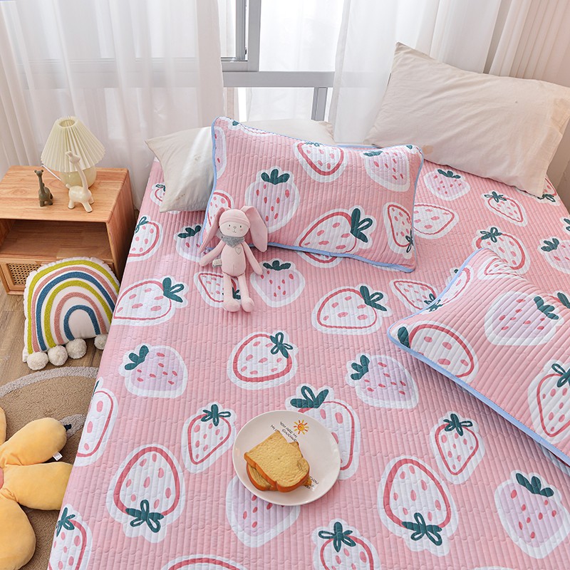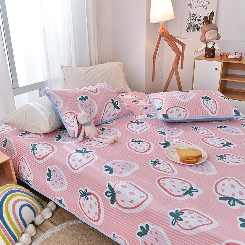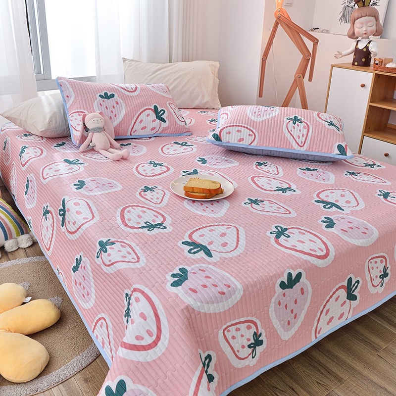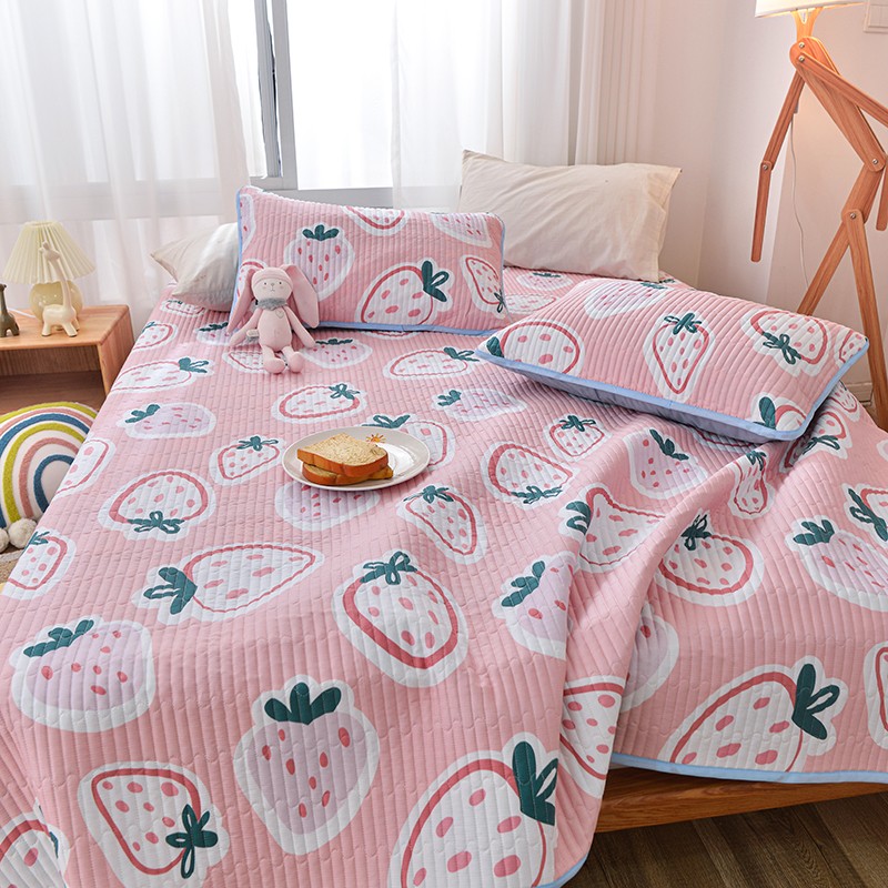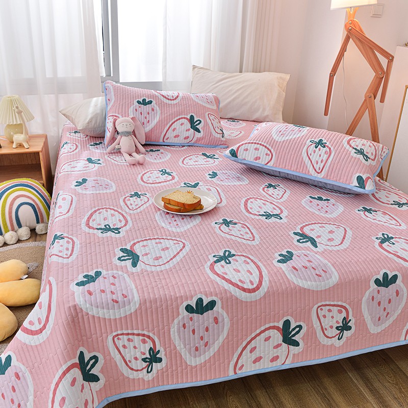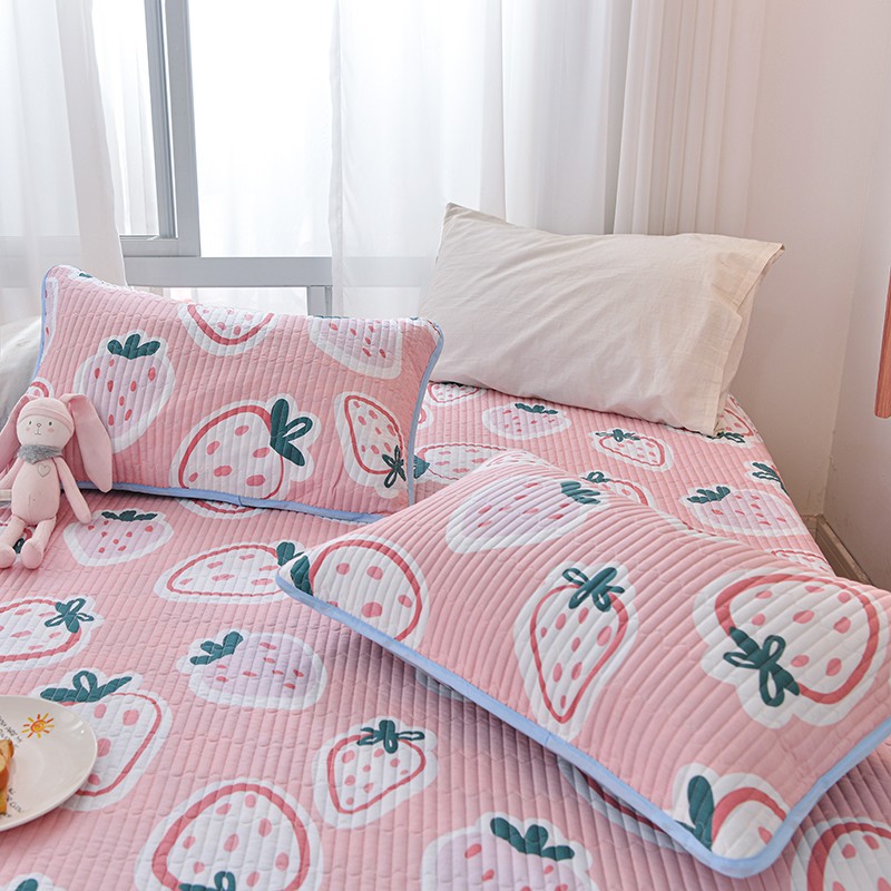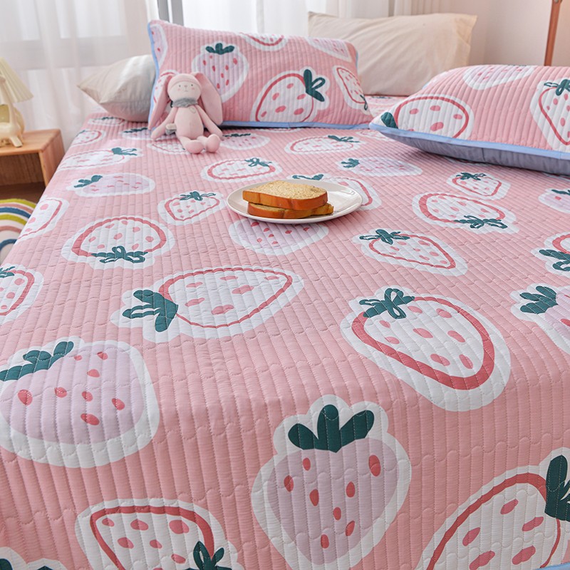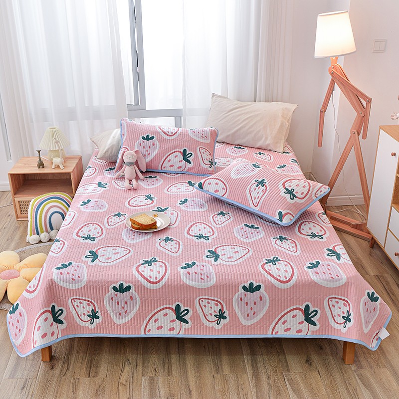 茉夕家纺 2022新款单面纯棉床盖 草莓心情