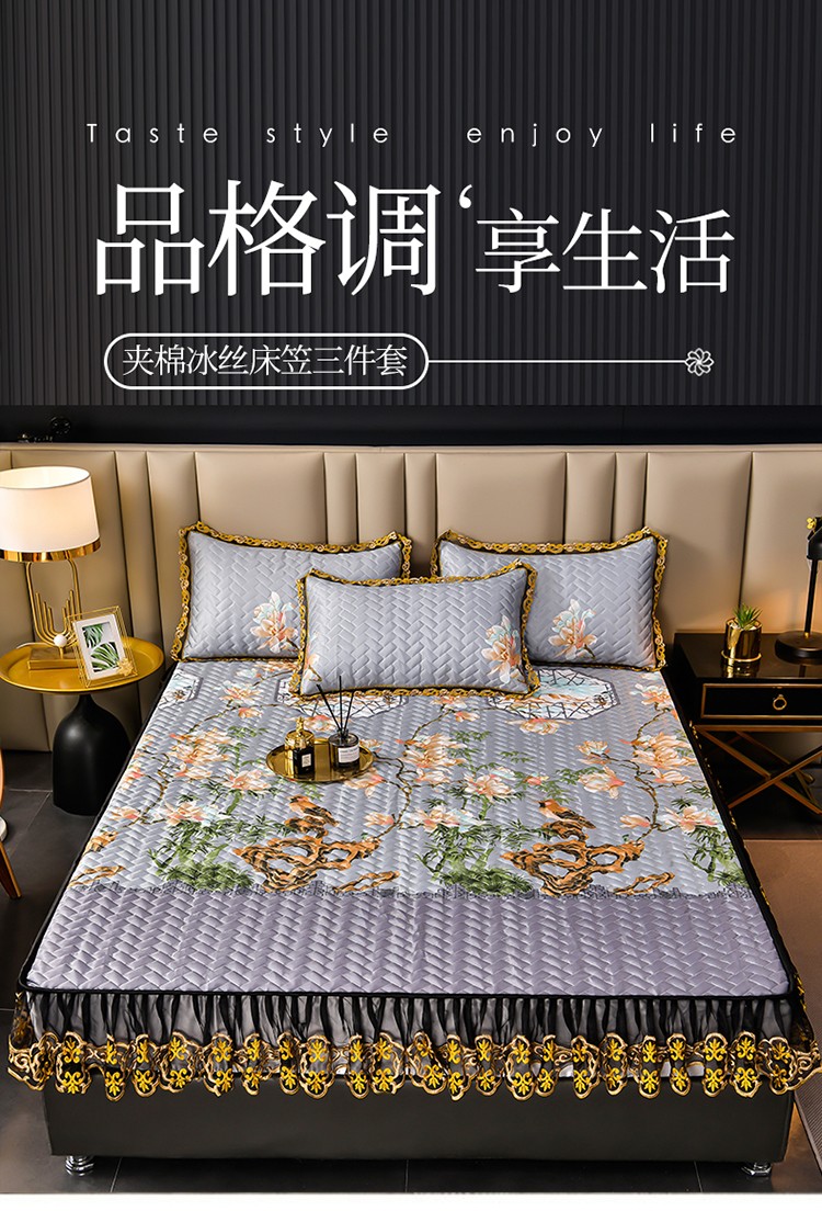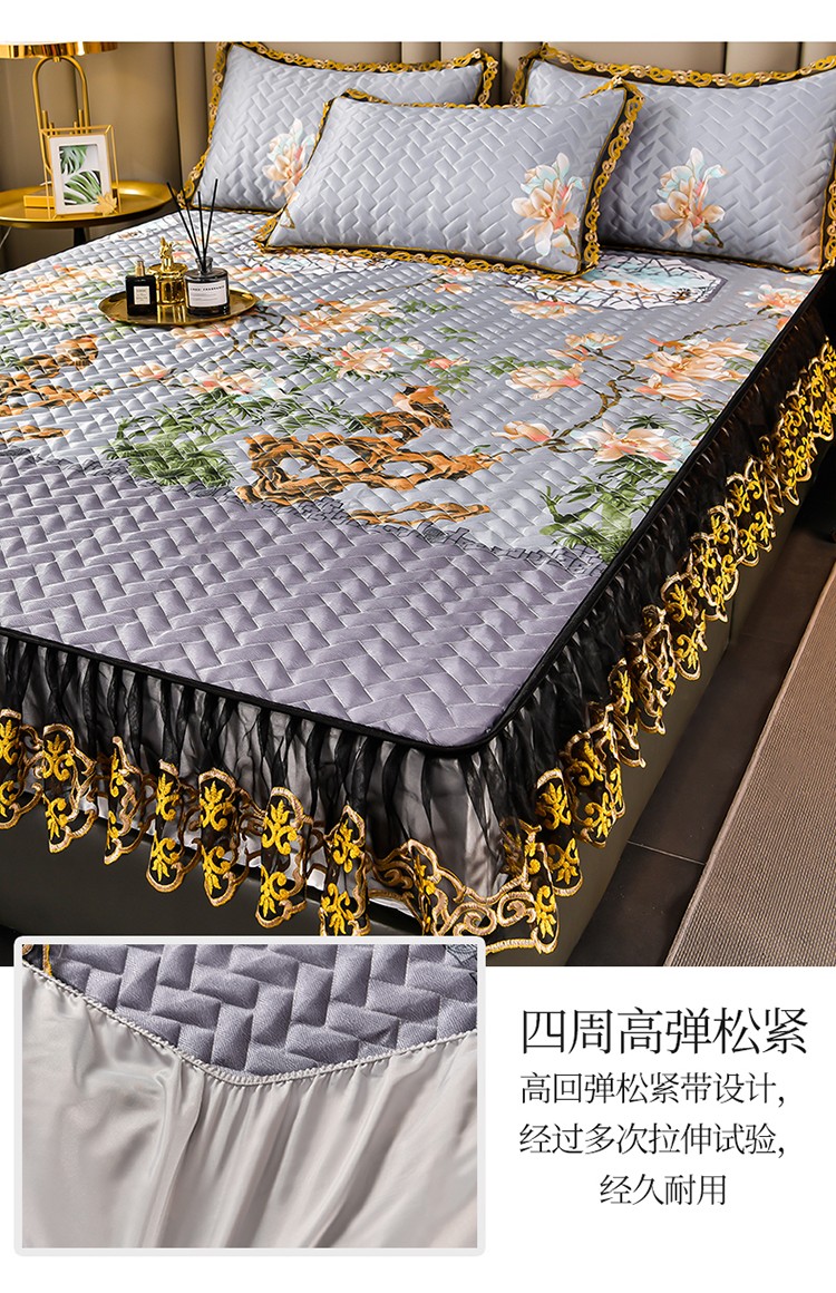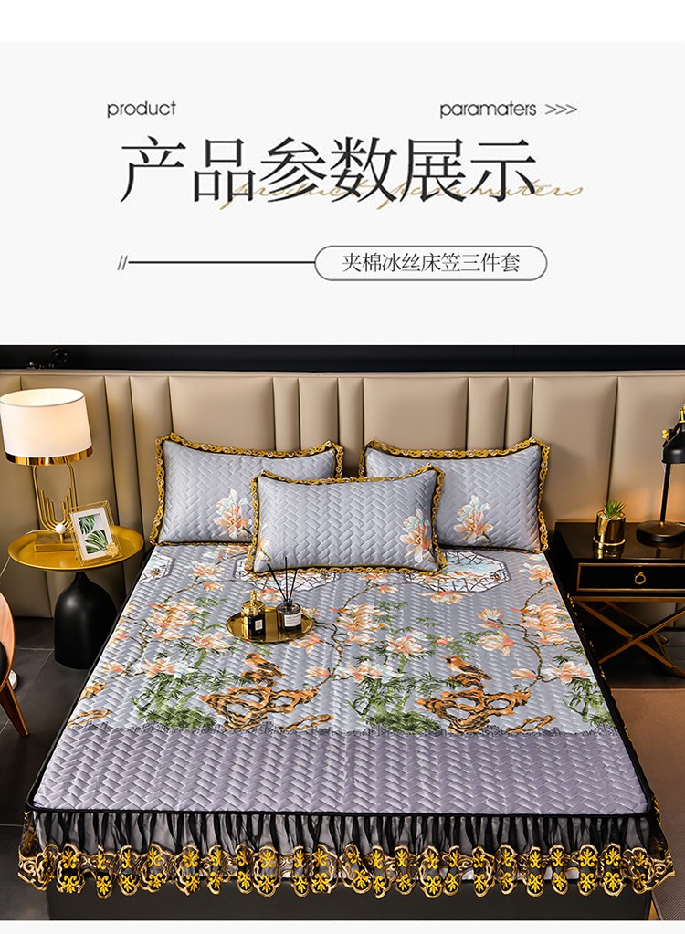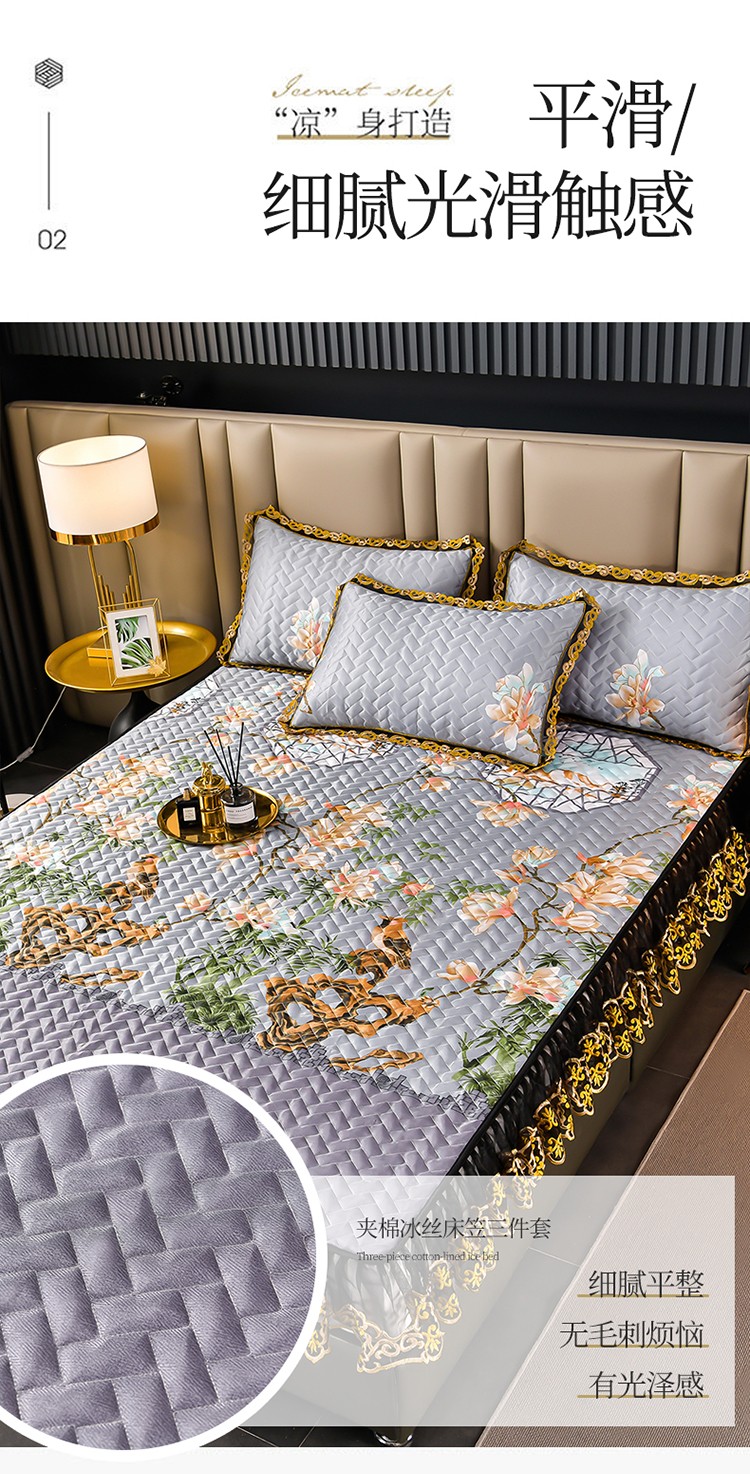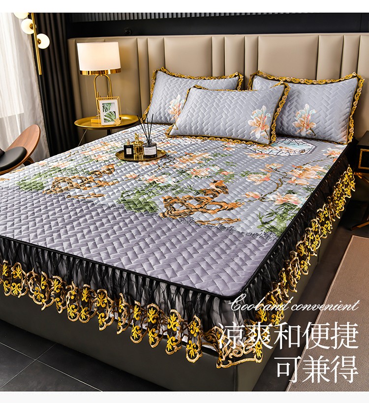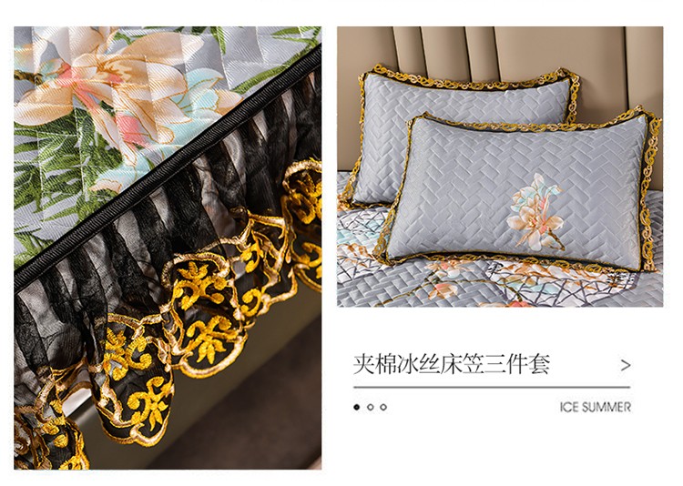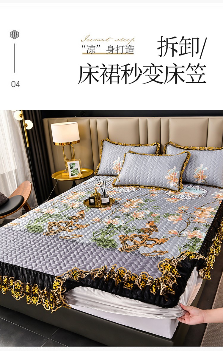 商品名称:迪梦思 2022新款蕾丝花边可拆卸床笠冰丝凉席三件套 江南春