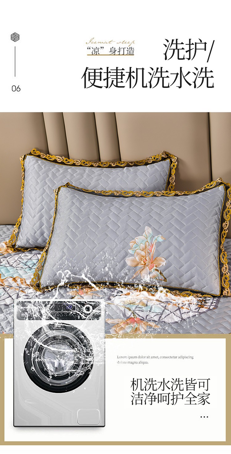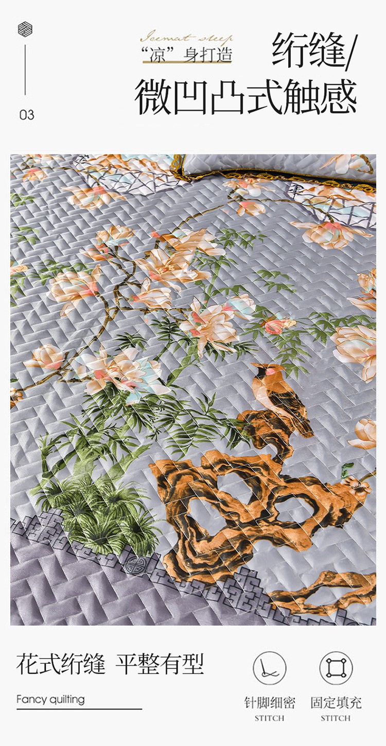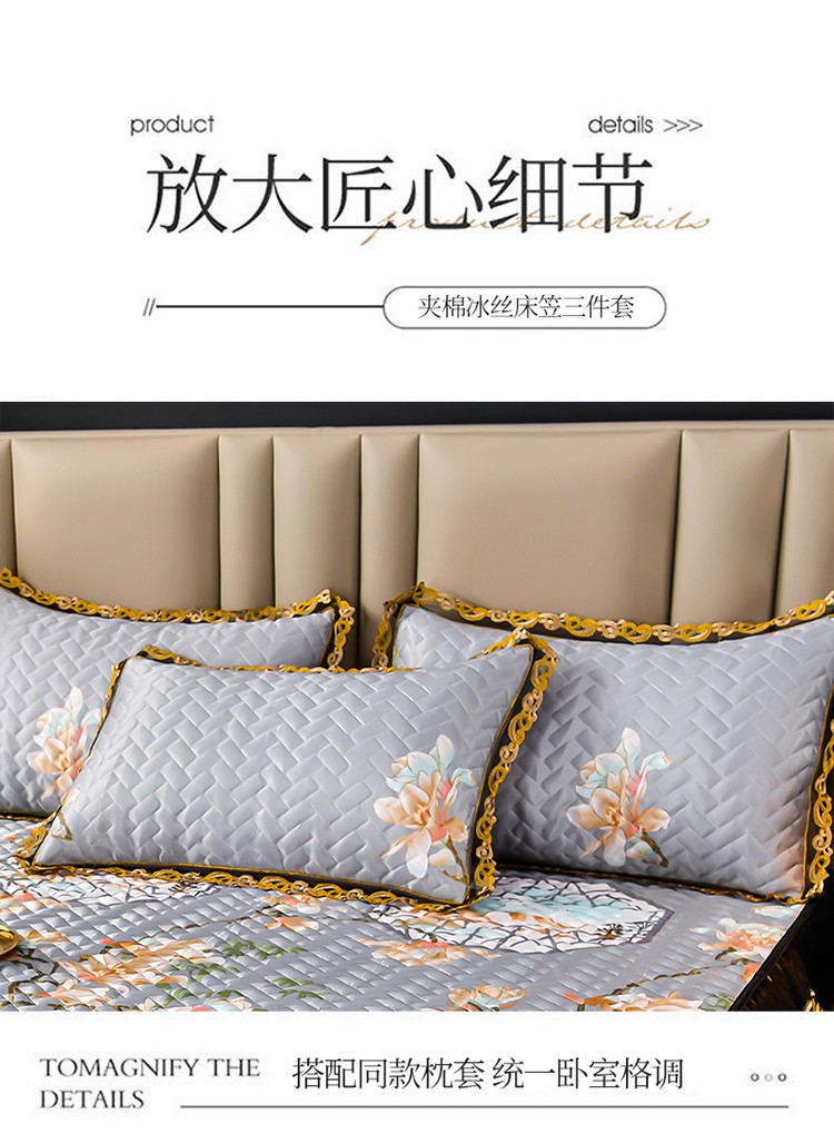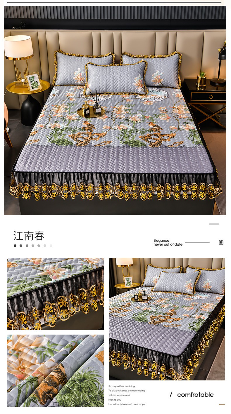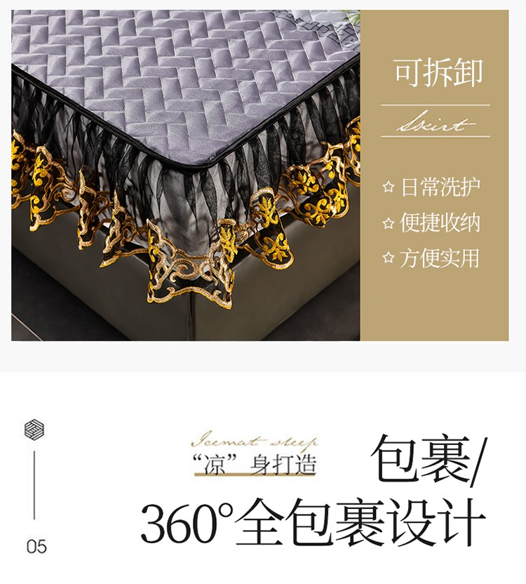商品名称:迪梦思 2022新款蕾丝花边可拆卸床笠冰丝凉席三件套 江南春