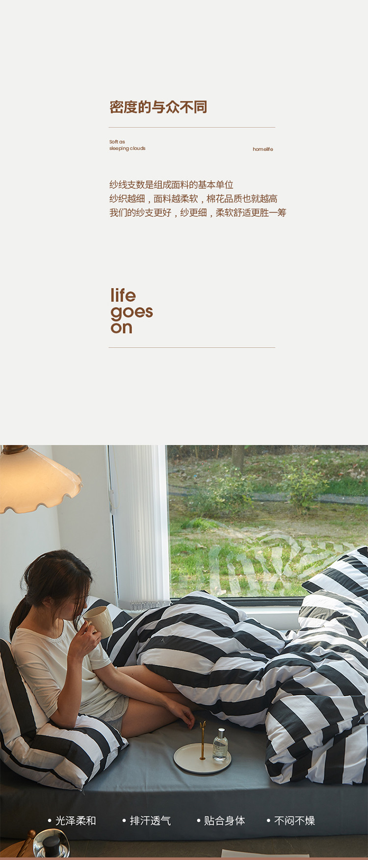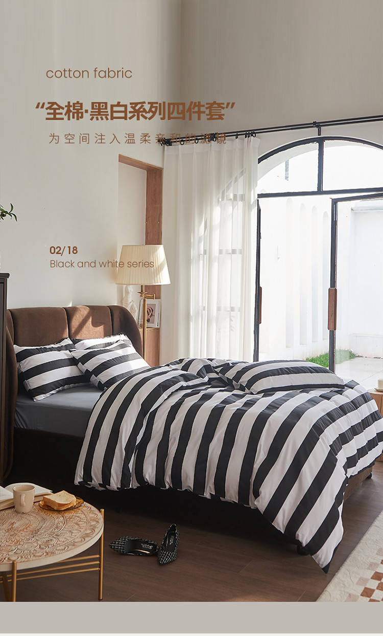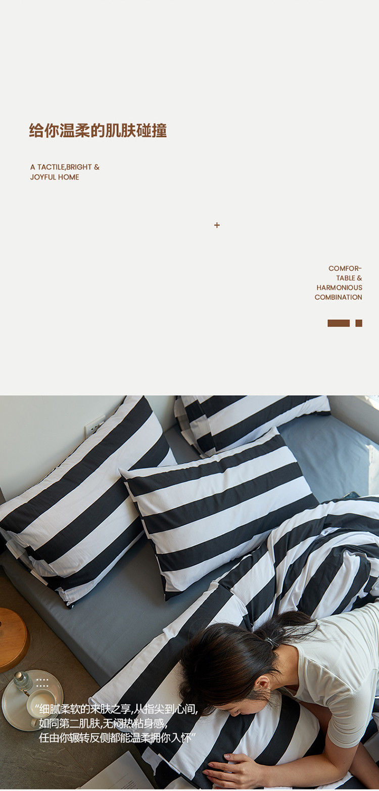 当前位置: 91家纺网 > 商品网购 > 床品套件 > 四件套 > 艾佳2025全棉13372黑白灰经典系列四件套-场景2 经典条纹灰