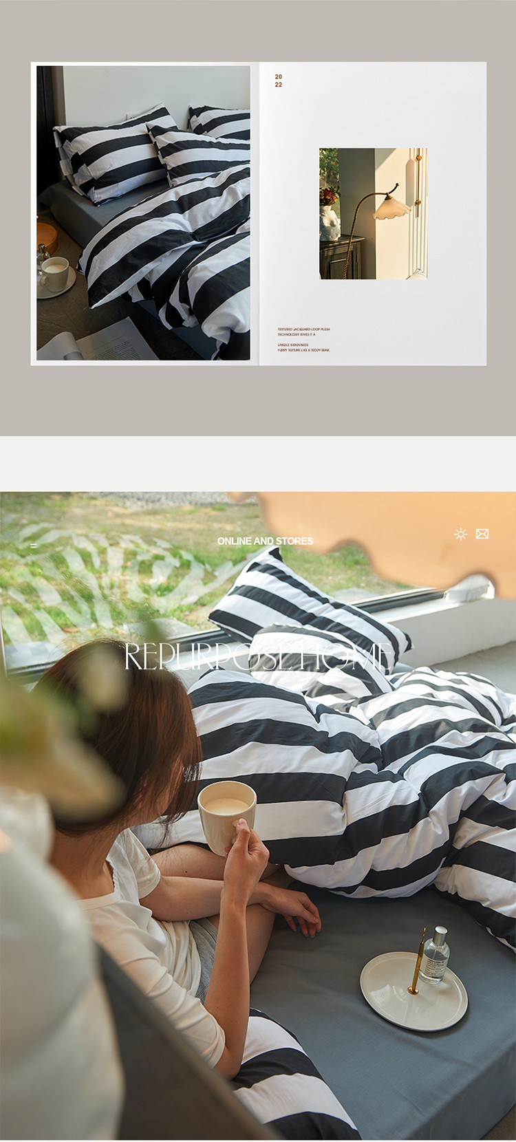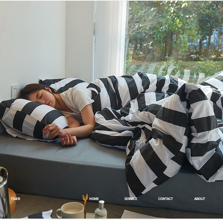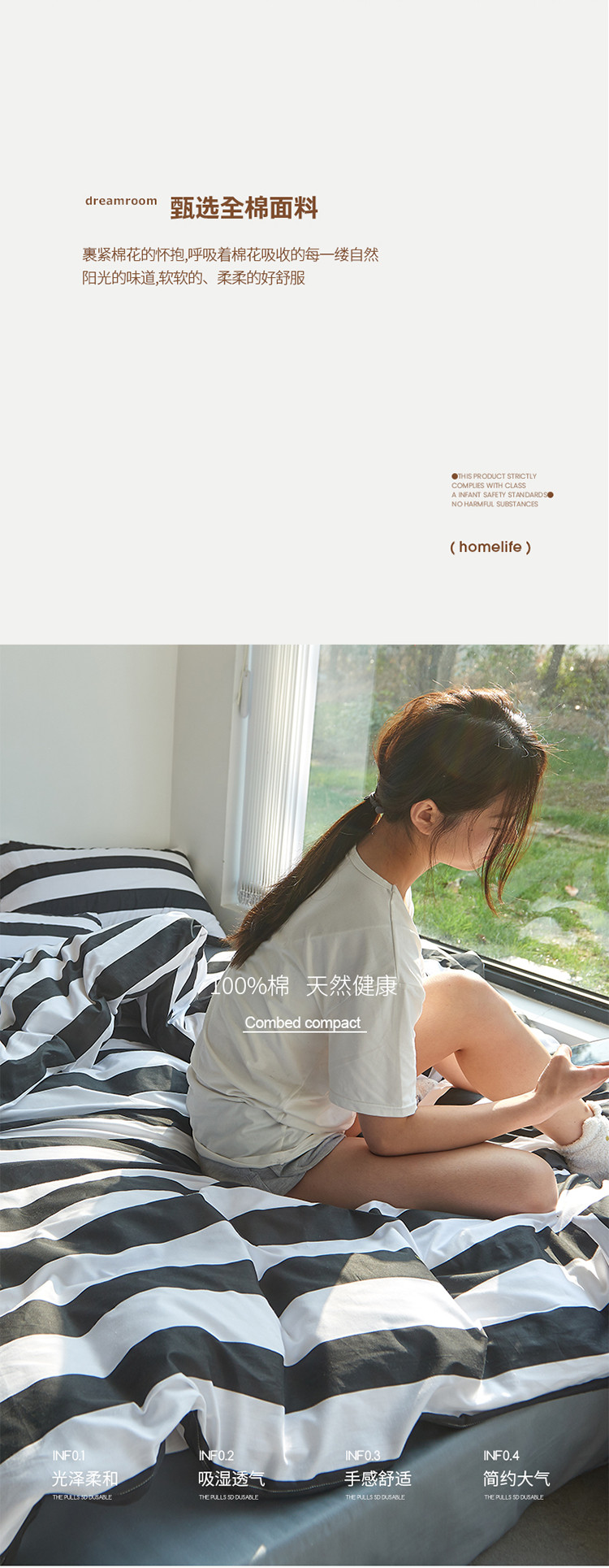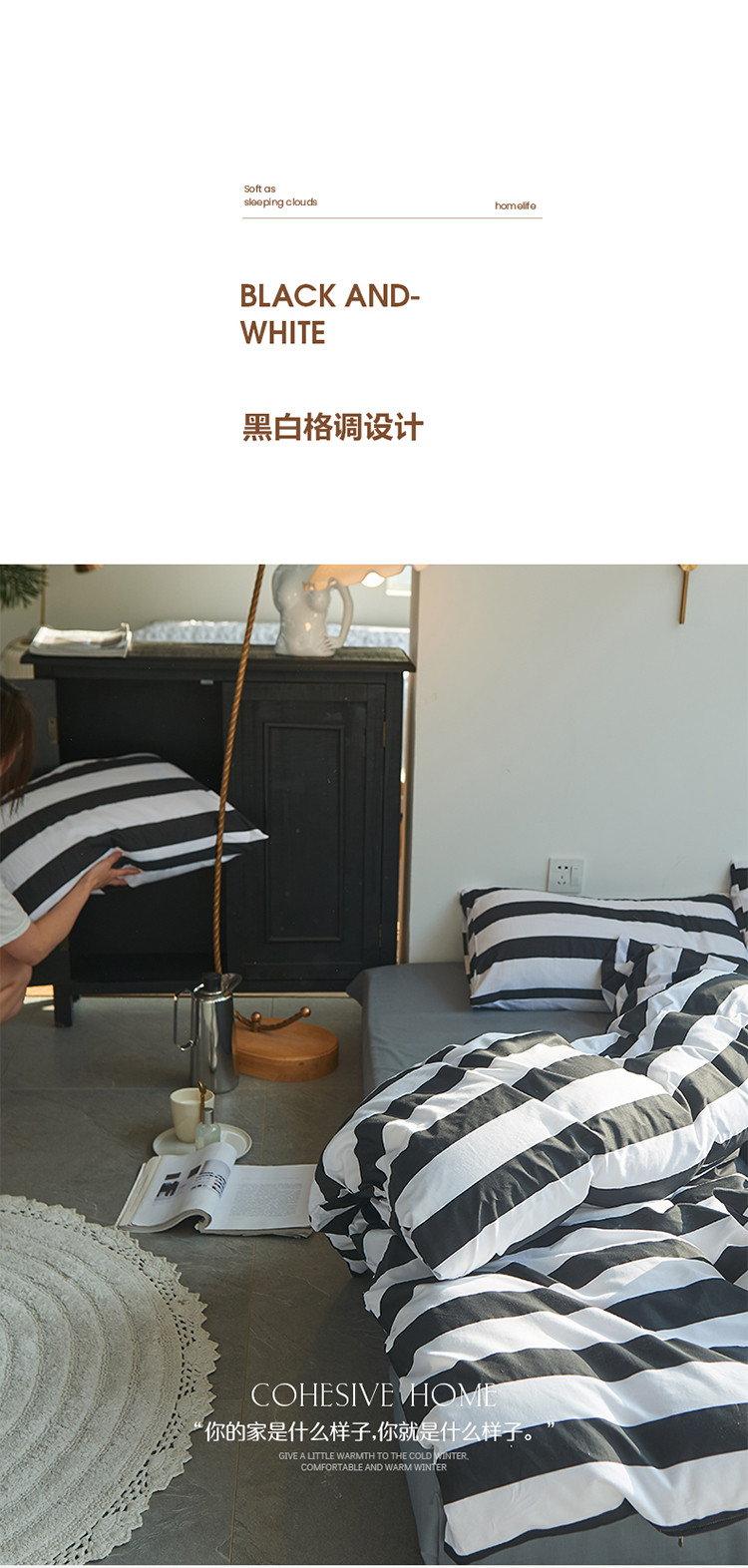 当前位置: 91家纺网 > 商品网购 > 床品套件 > 四件套 > 艾佳2025全棉13372黑白灰经典系列四件套-场景2 经典条纹灰