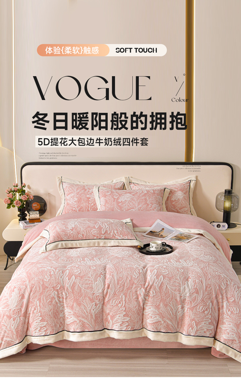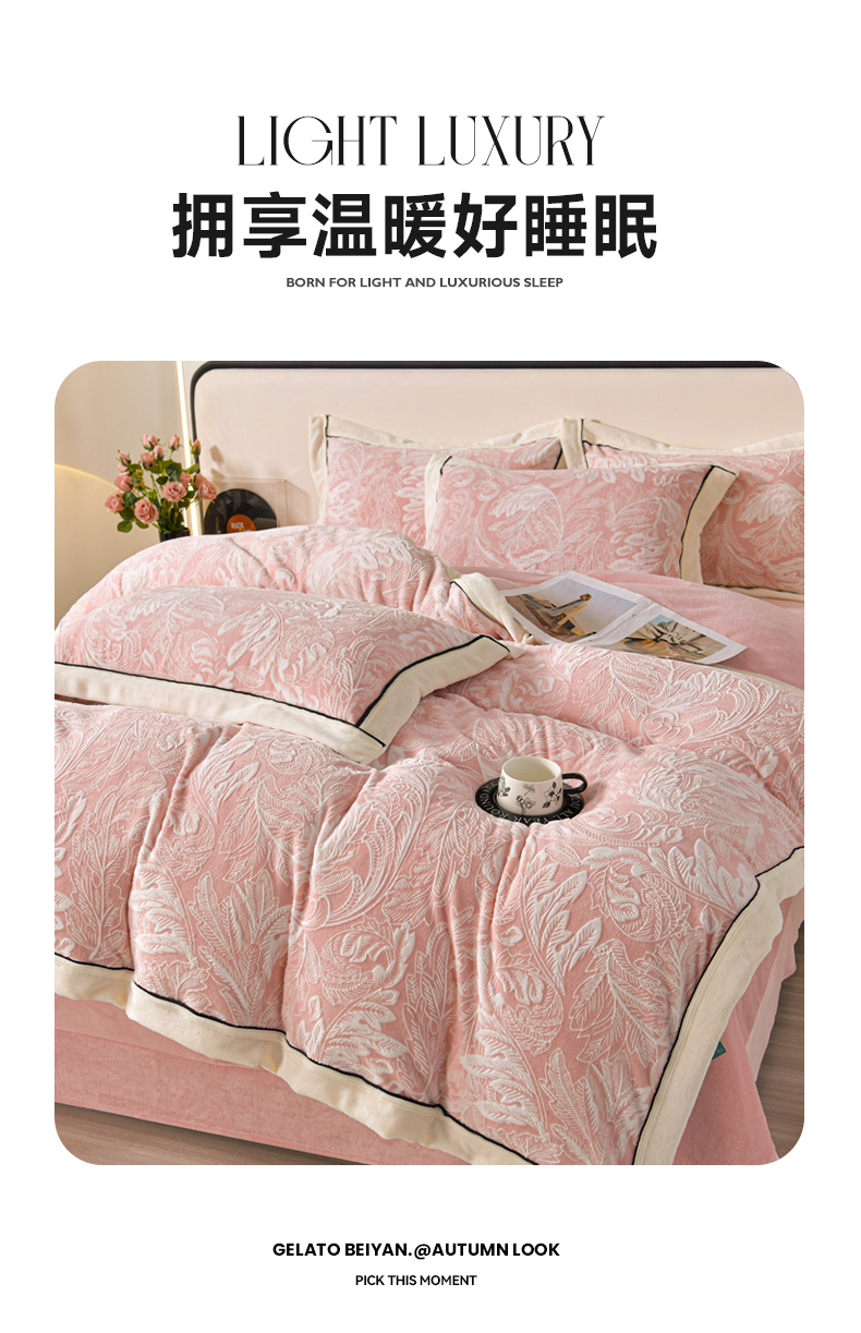 总 妮恒美 2024新款提花大包边牛奶绒四件套11