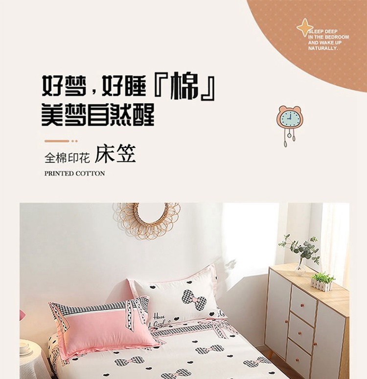 晶缦 2022新款全棉12868全棉印花套件萌新系列单床单-单床笠 蝴蝶结