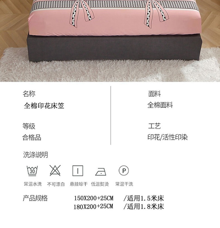 商品名称:晶缦 2022新款全棉12868全棉印花套件萌新系列单床单-单床笠 蝴蝶结