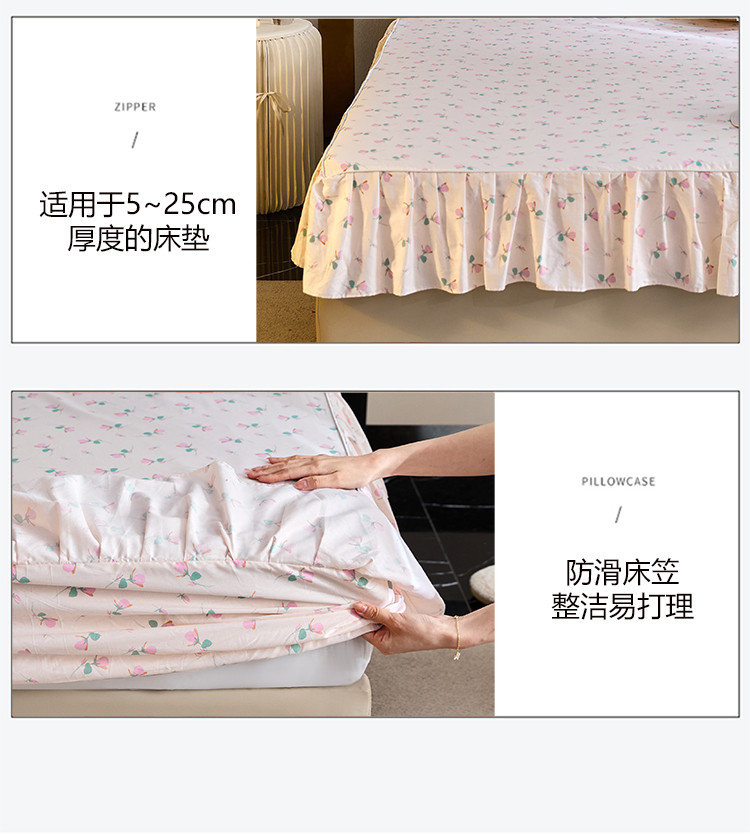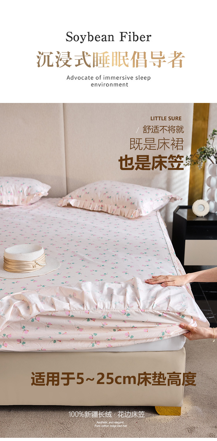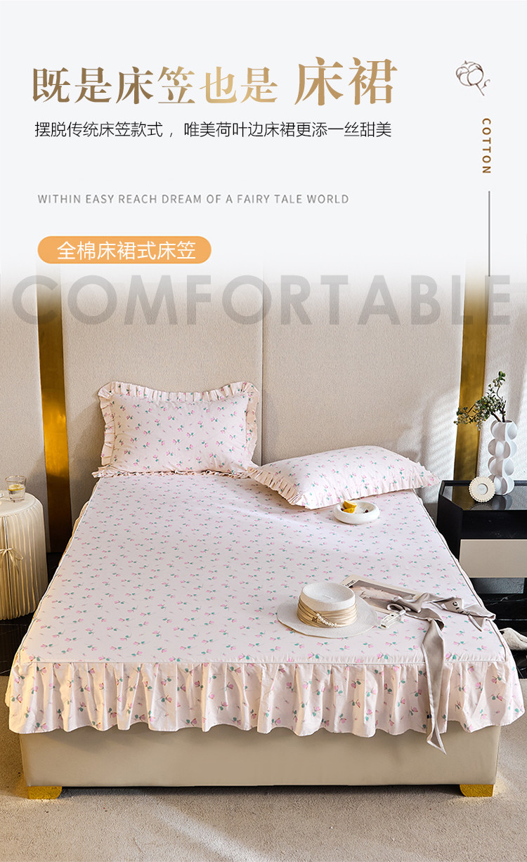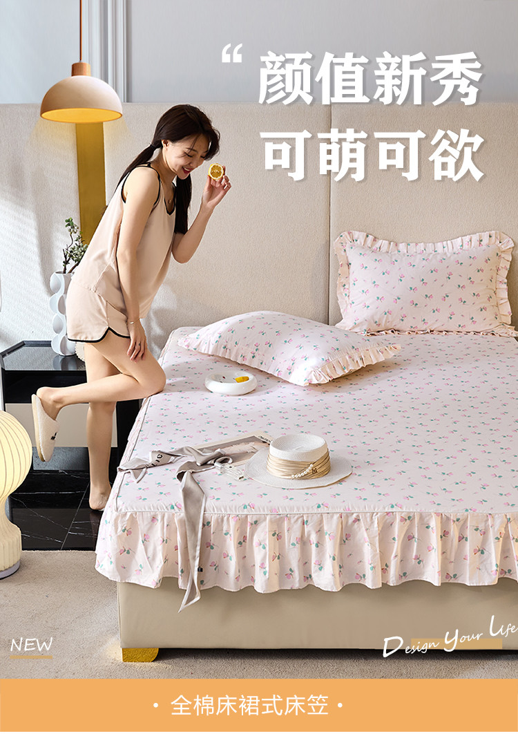 M2024新款花边印花全棉单床笠纯棉床裙田园公主风床垫保护套,初恋,花乐礼B,蕾娅,恋语,童心,小清新,心愿,星星点点