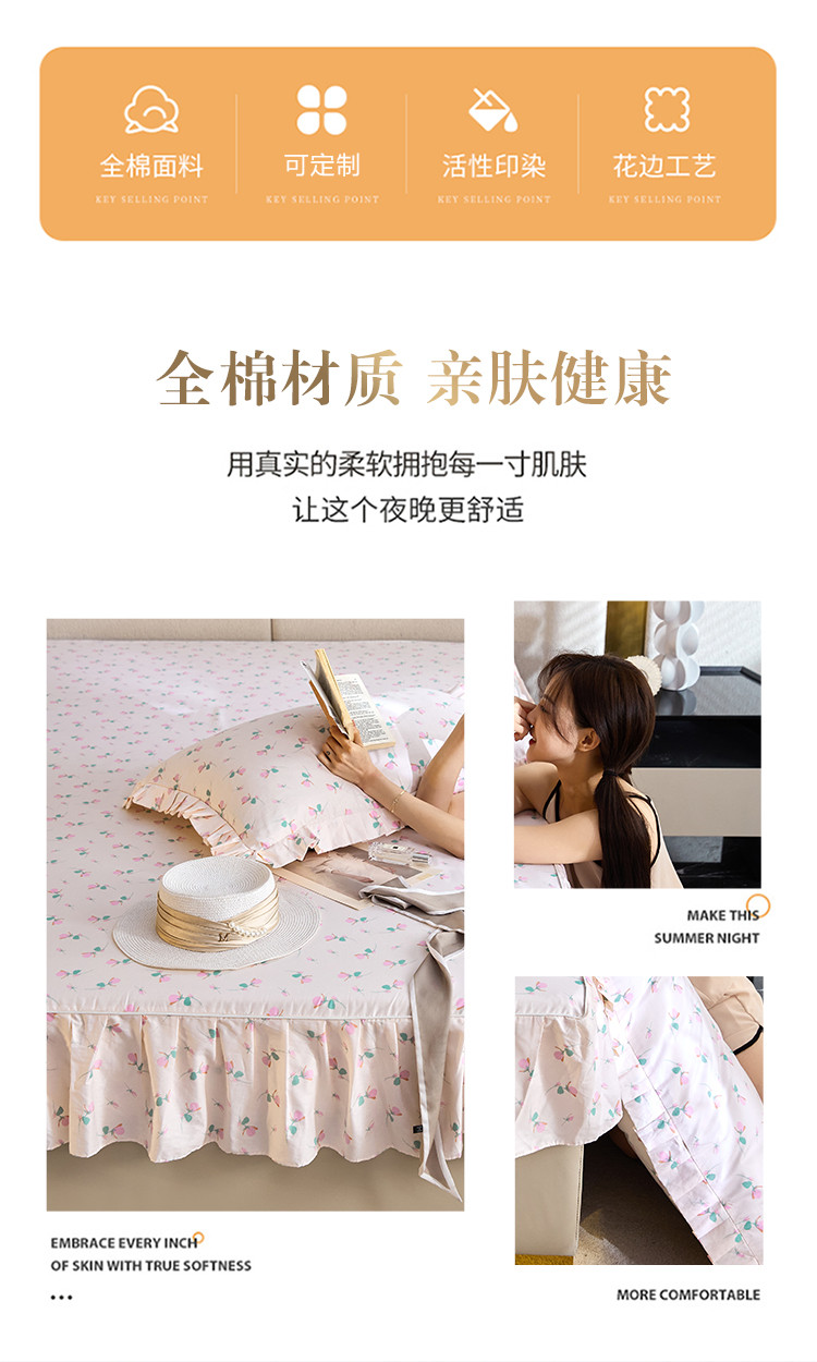 商品名称:铭动家纺 2023新款纯棉单层花边床笠 花乐礼B