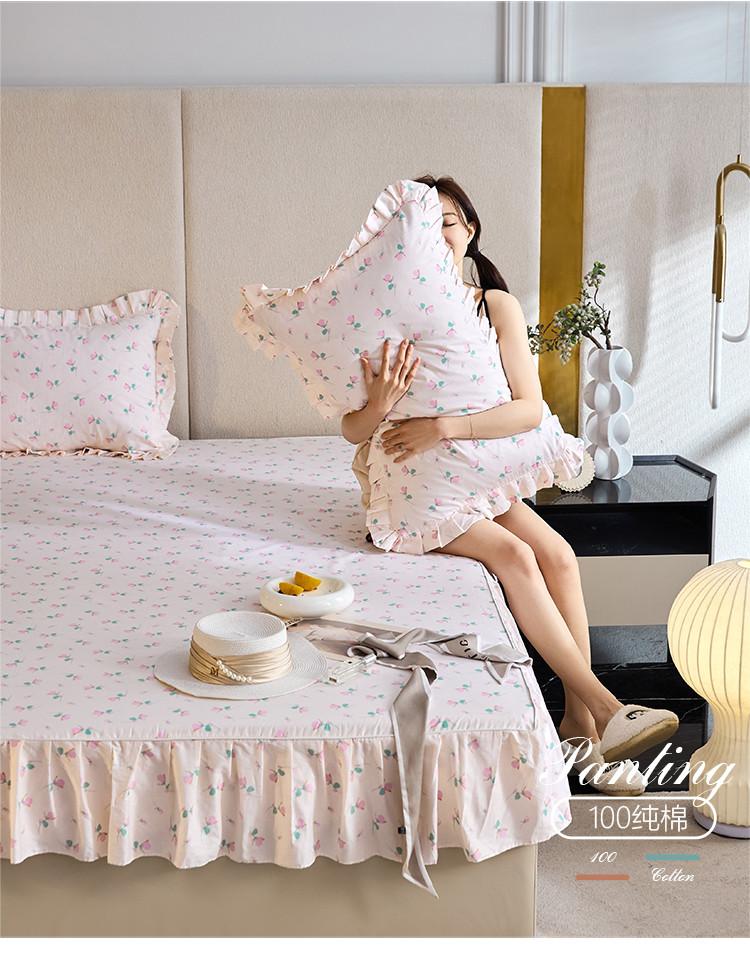 铭动家纺 2023新款纯棉单层花边床笠 花乐礼B