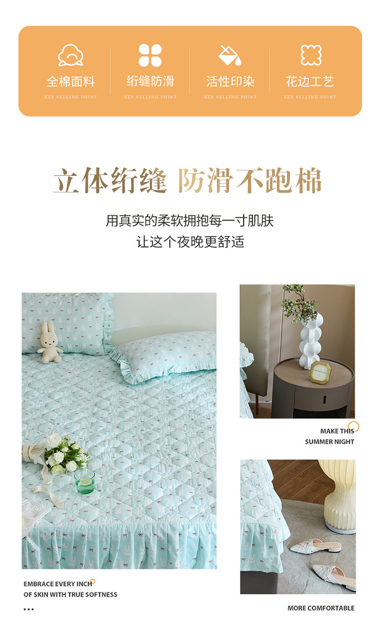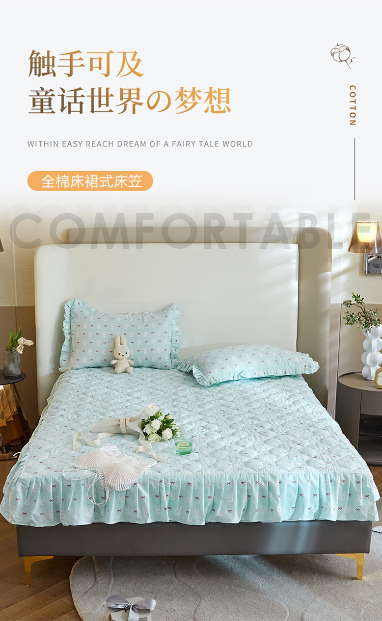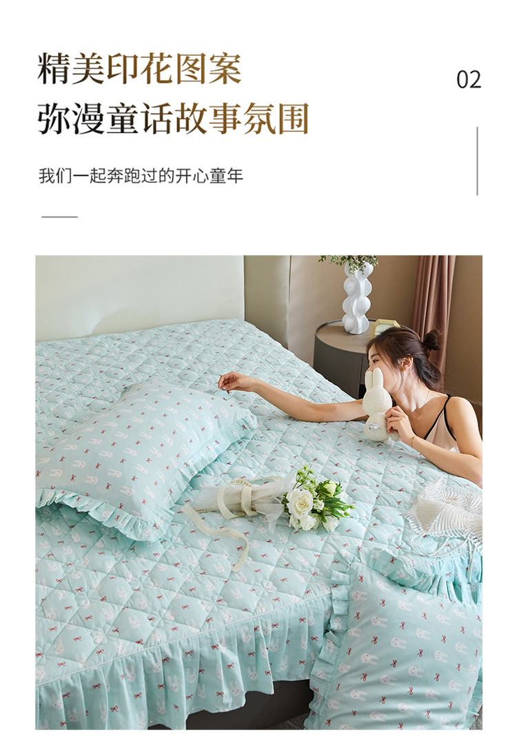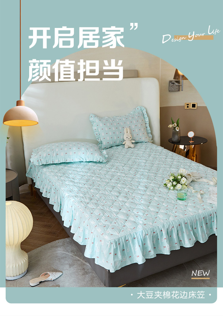 • 91家纺网 家纺一手货源 找家纺 铭动家纺 2023新款大豆双层夹棉花边床笠 大豆夹棉-童心