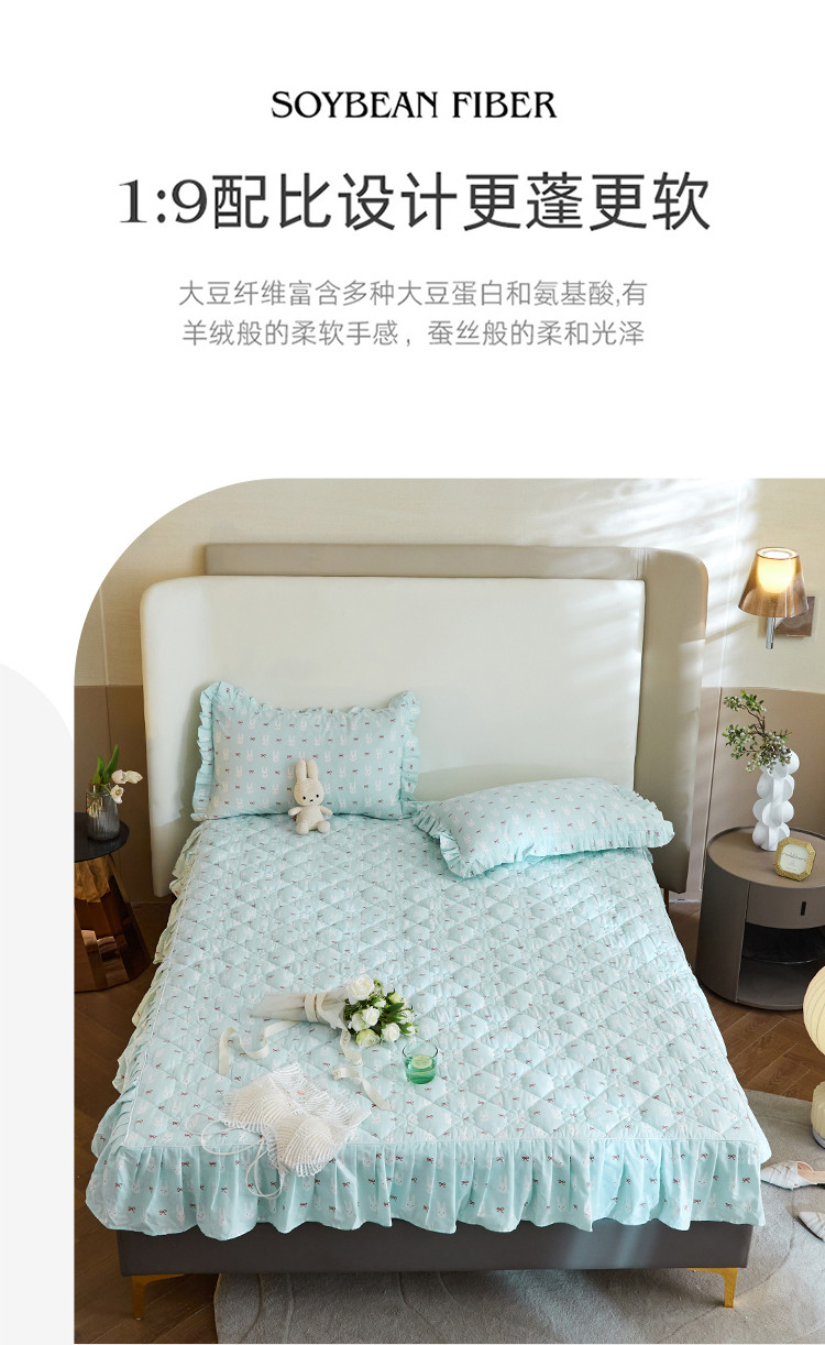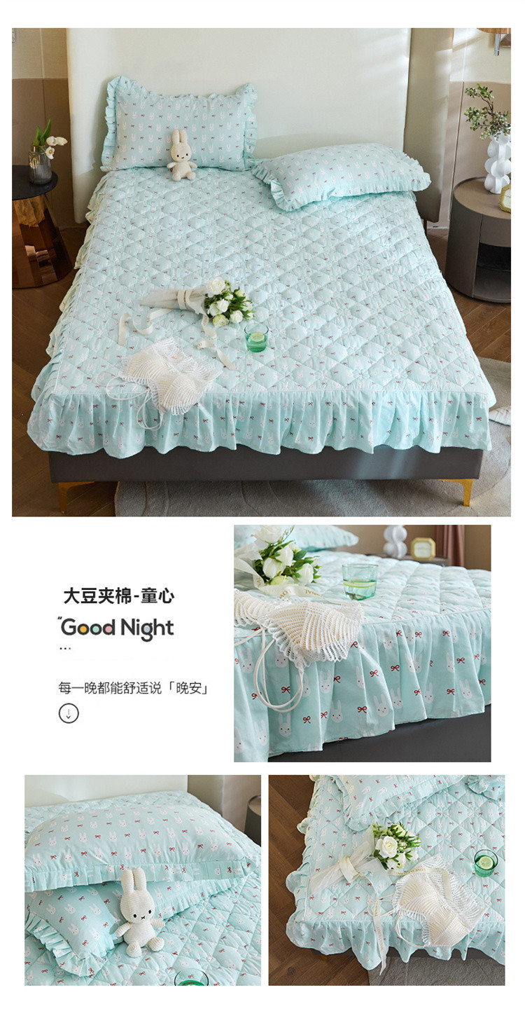 铭动家纺 2023新款大豆双层夹棉花边床笠 大豆夹棉-童心