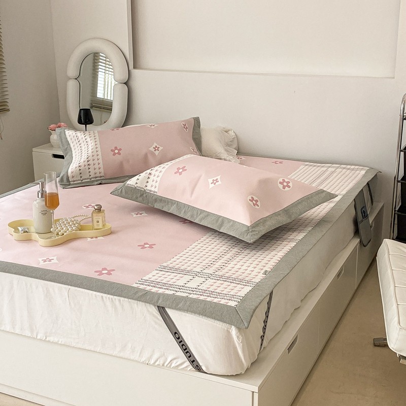 (总)昔可 2023新款全棉ins格子混搭系列四件套,ins简约绿格,粉蓝格,开心果格,学院格纹,粉绿格,海盐兰格,黄绿格,夏日蓝条,芝士黄条,紫芋泥芝士格