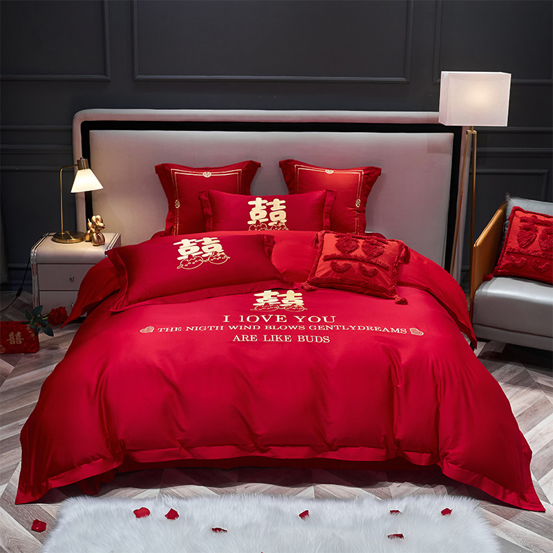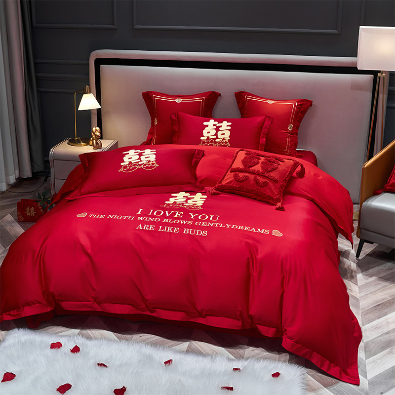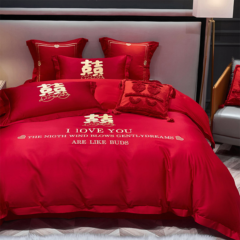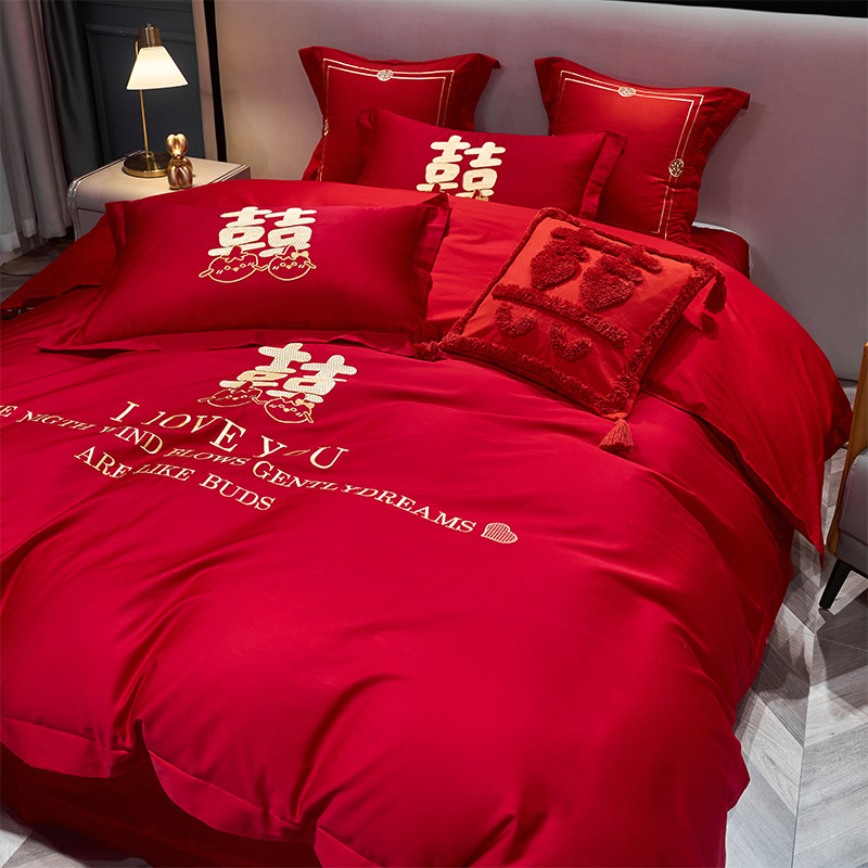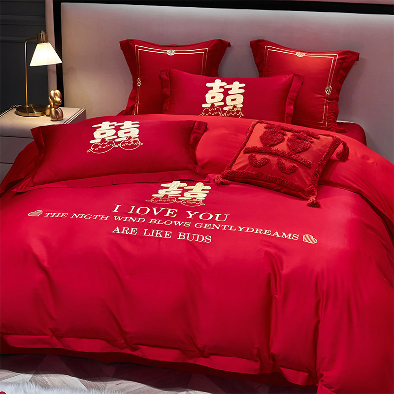 用心 2022新款磨毛刺绣婚庆四件套 甜蜜love