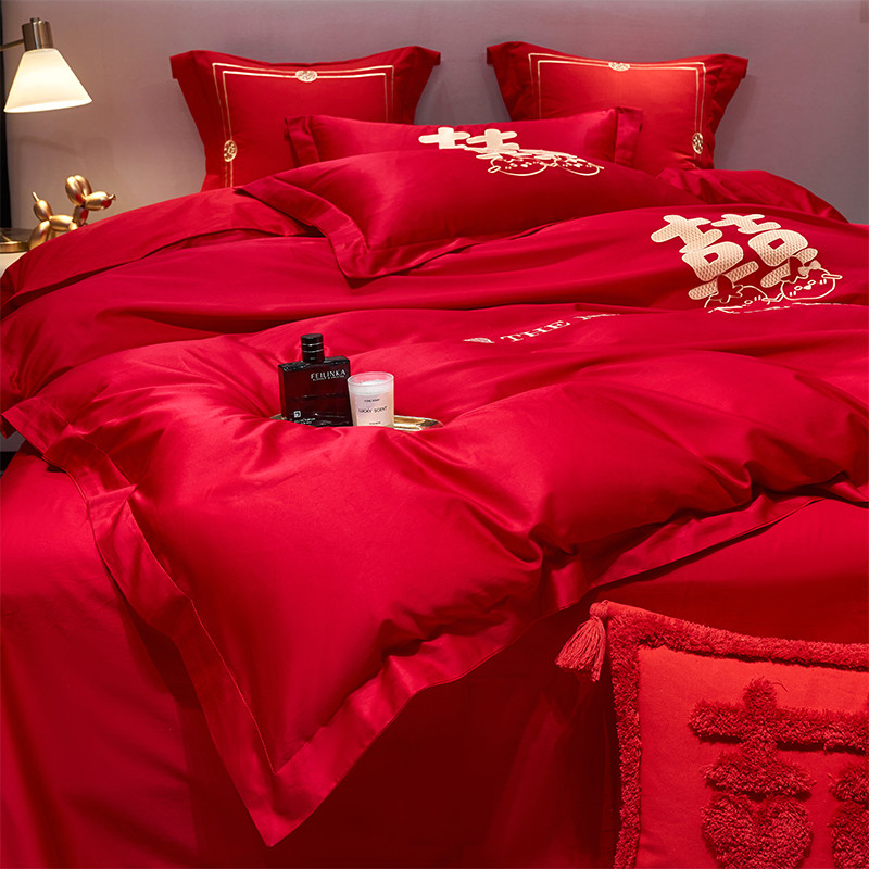 (总)用心 2026年新款双面长绒棉提花婚庆刺绣四件套,喜上喜,禧爱,吉祥