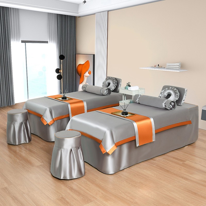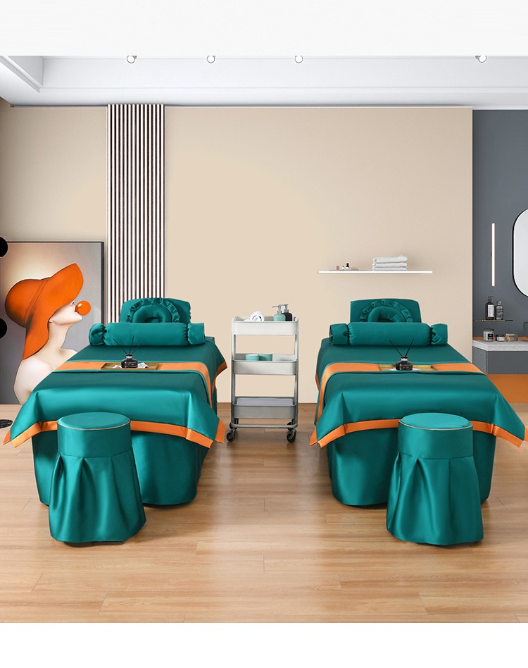(总)莉人坊 2023新款贵妃缎按摩床床罩系列,逃之夭夭宝蓝,逃之夭夭黛绿,逃之夭夭灰色,逃之夭夭橘色,逃之夭夭米黄,逃之夭夭浅蓝