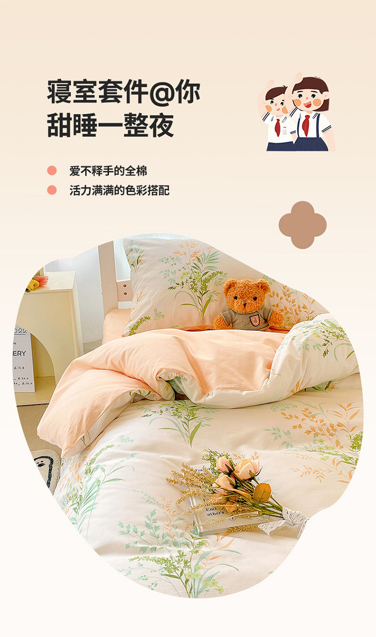 (总)名兮 2022新款AB版清新全棉印花学生三四件套系列