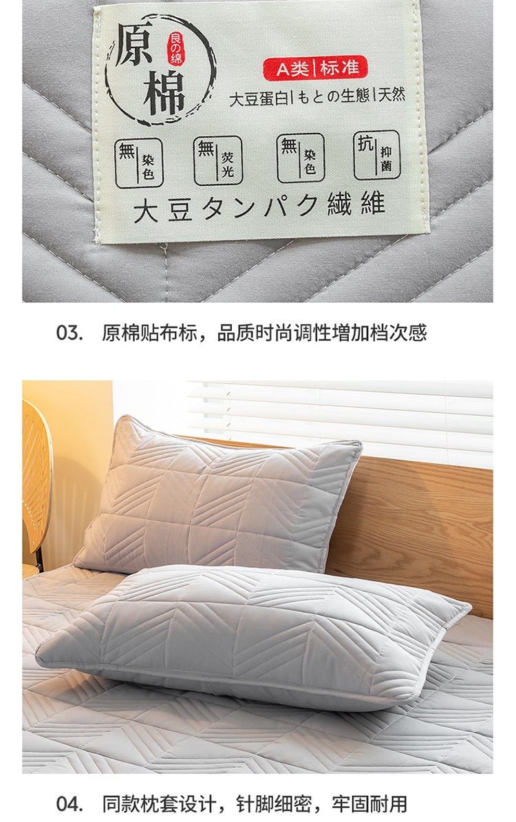 给笠 2023新款A类原棉夹棉大豆床笠 几何格-星灰
