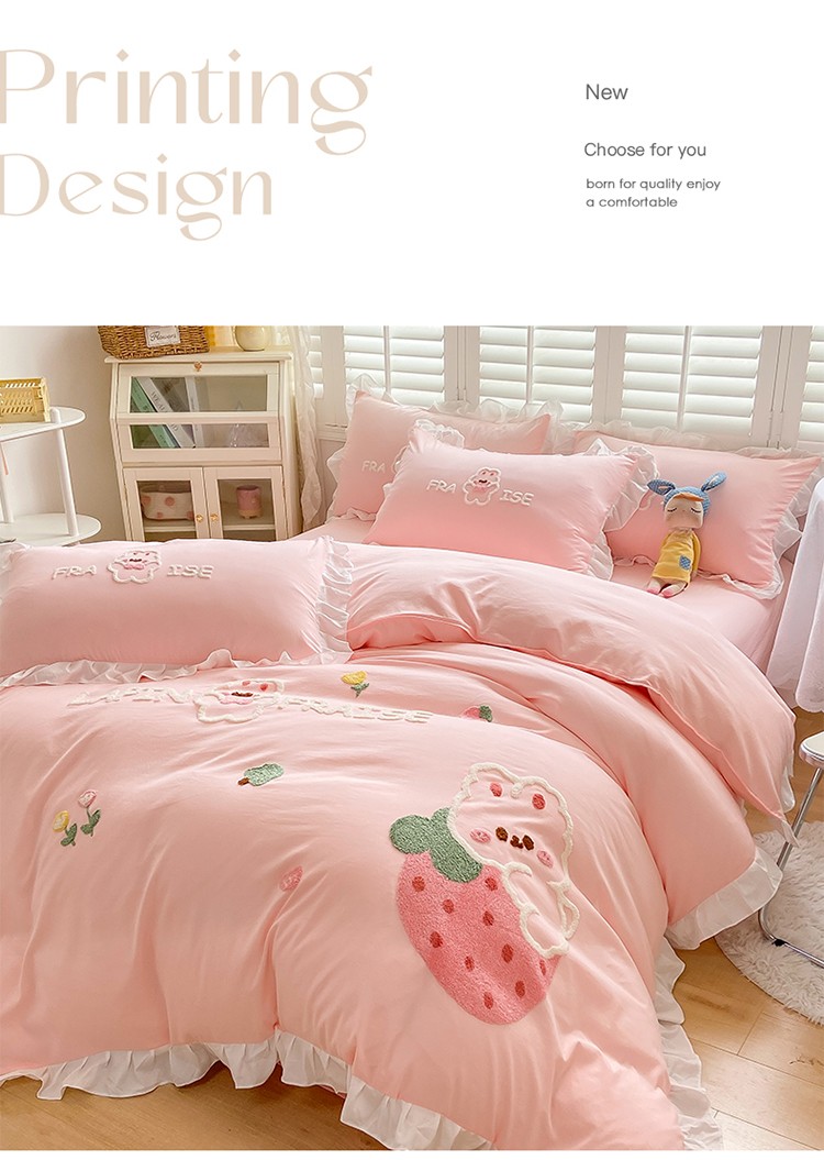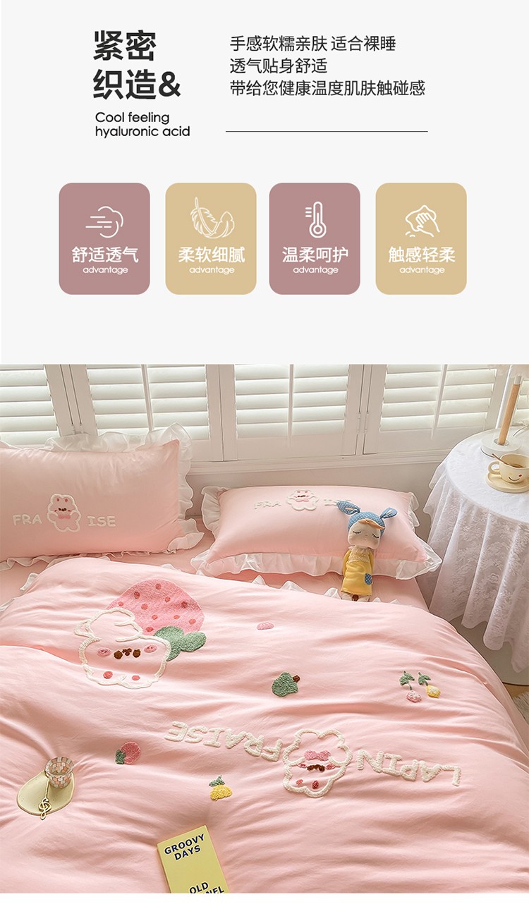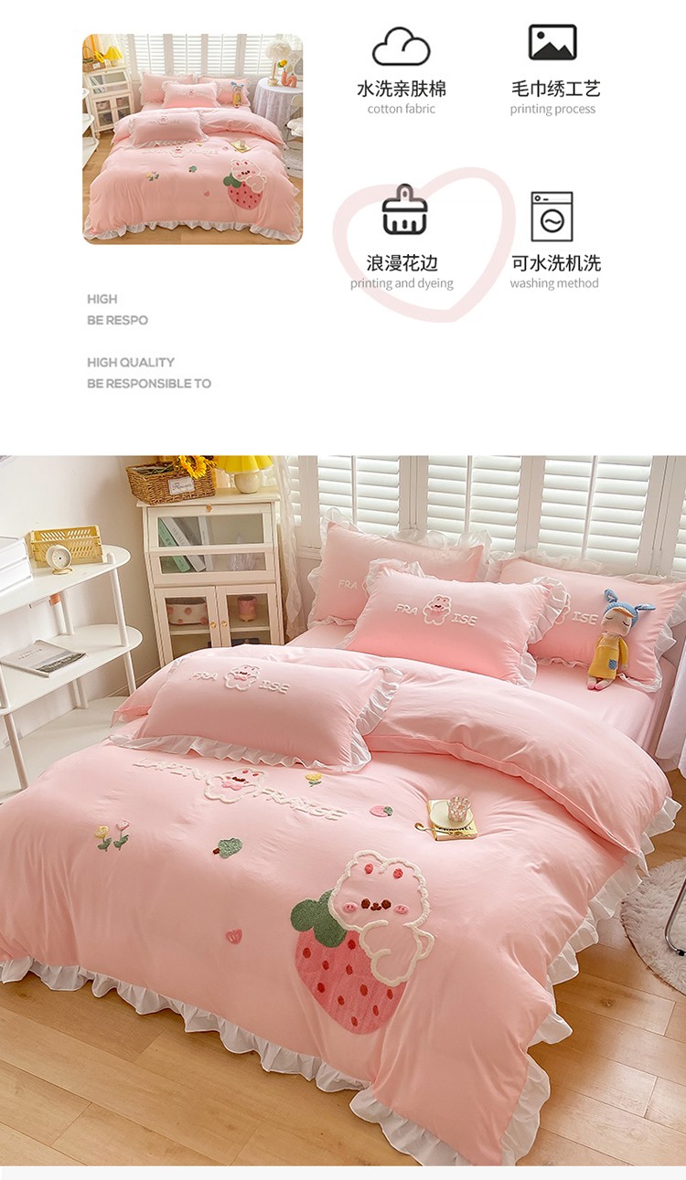 商品名称:(总)易禾 2022新款水洗亲肤棉毛巾绣草莓兔四件套