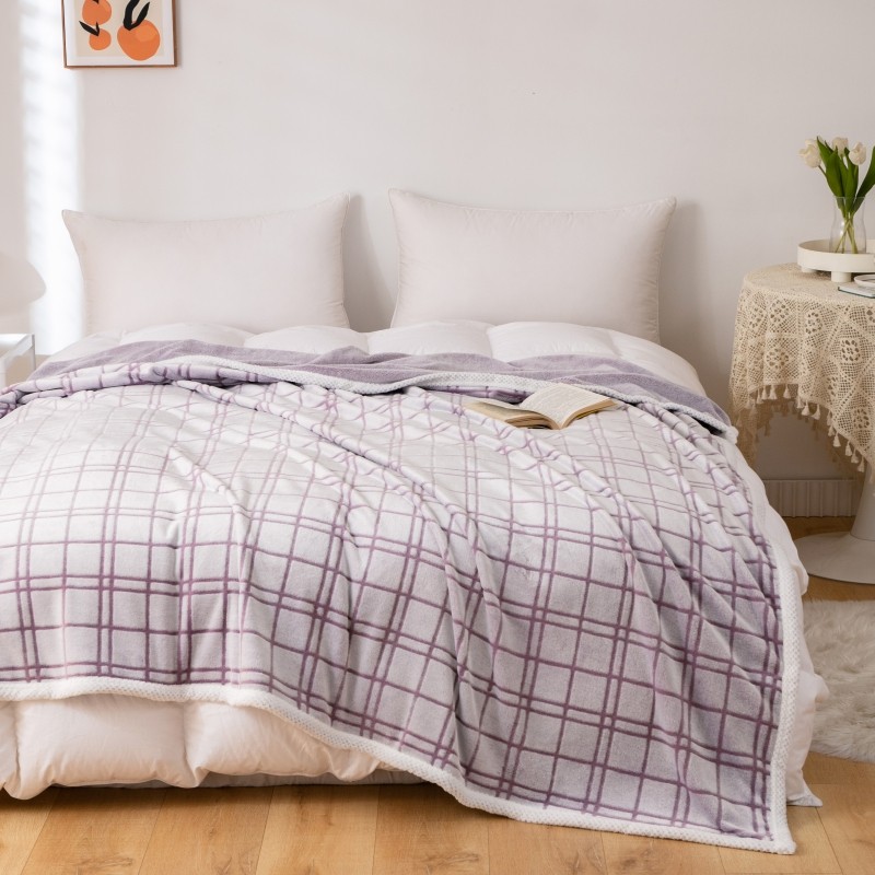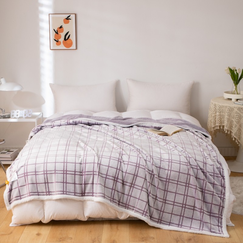 当前位置: 91家纺网 > 商品网购 > 毛毯休闲毯绒毯 > 毛毯 > 来菲毛毯 2025新款背印剪花牛奶绒珊瑚绒法兰绒毛毯 紫格子