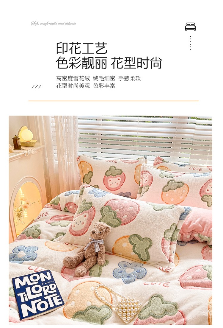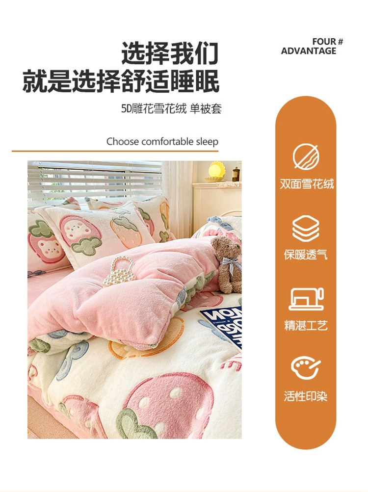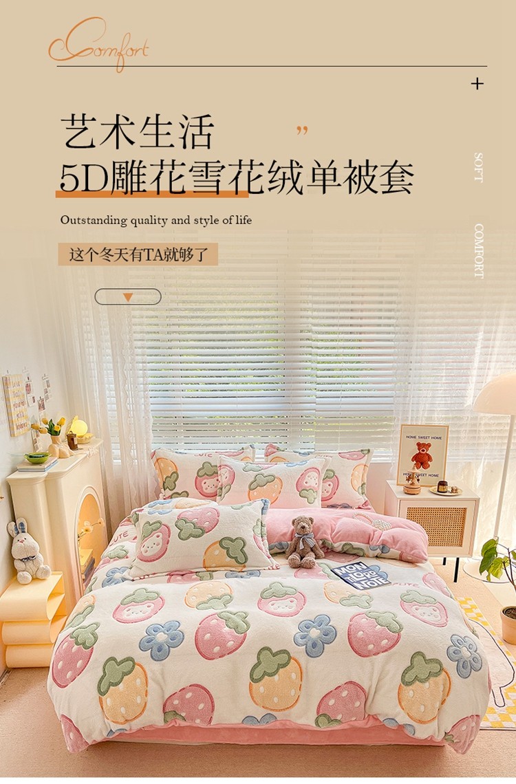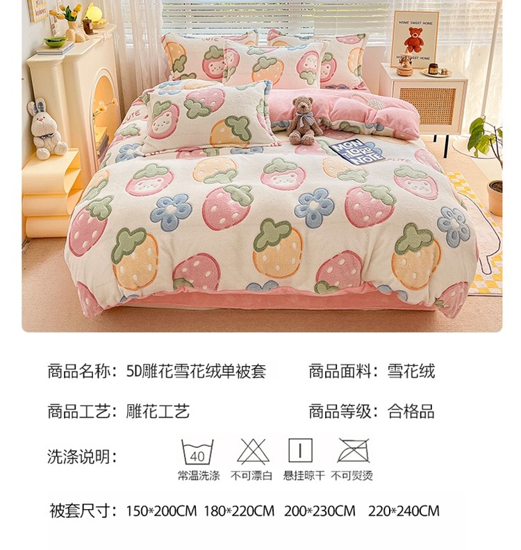 商品名称:2022新款5D牛奶绒雪花绒单被套 甜甜草莓