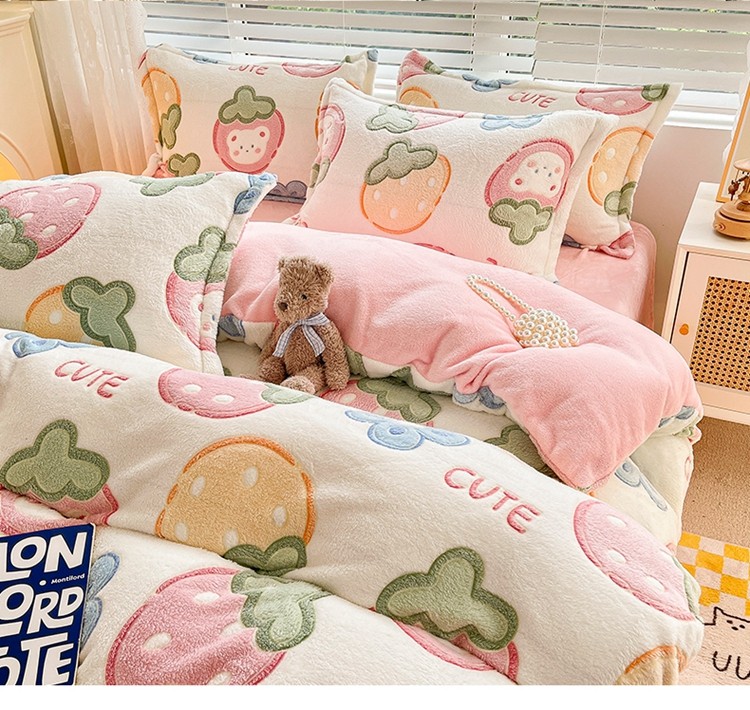2022新款5D牛奶绒雪花绒单被套 甜甜草莓