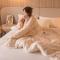 (总)简爱 2025新款水洗棉雪纺双层花边四件套,高级灰,告白玉,抹茶绿,奶油黄,夏日蓝,胭脂粉,优雅紫