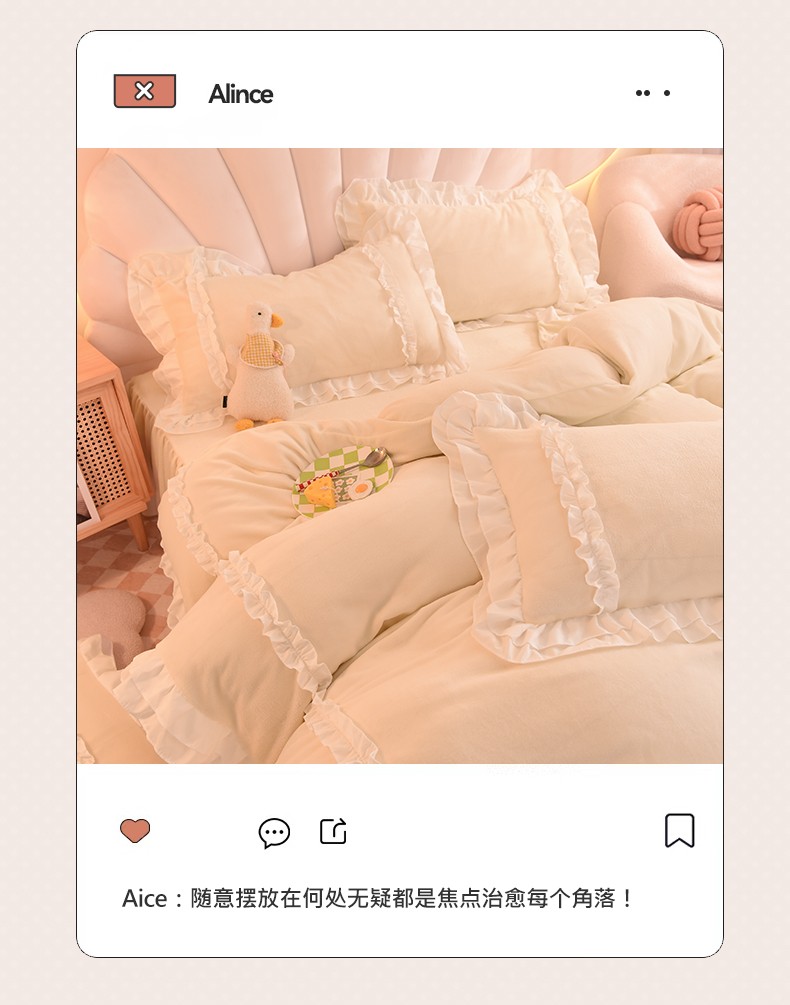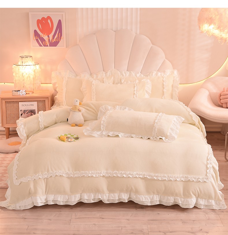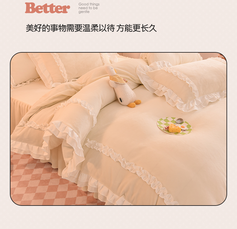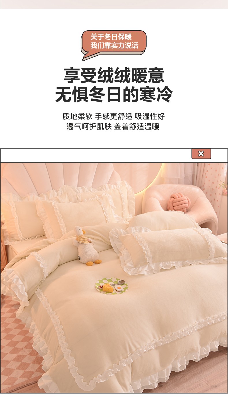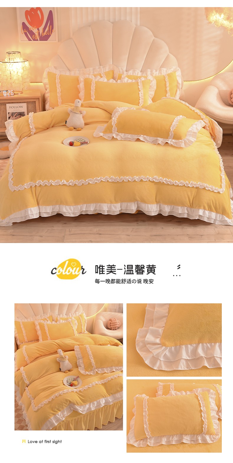 当前位置: 91家纺网 > 商品网购 > 床品套件 > 四件套 > 牛奶绒四件套 > 逸尚阁-2022新款双层花边牛奶绒四件套件套 唯美-温馨黄