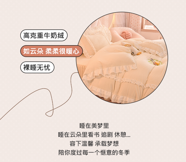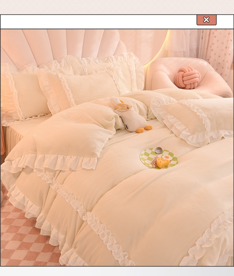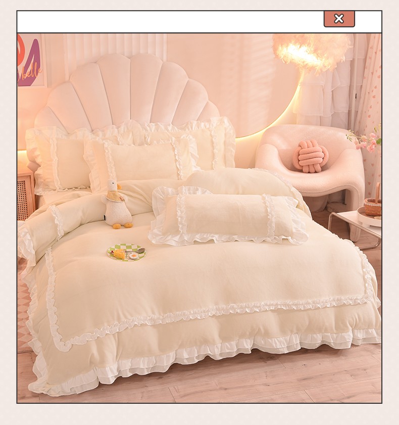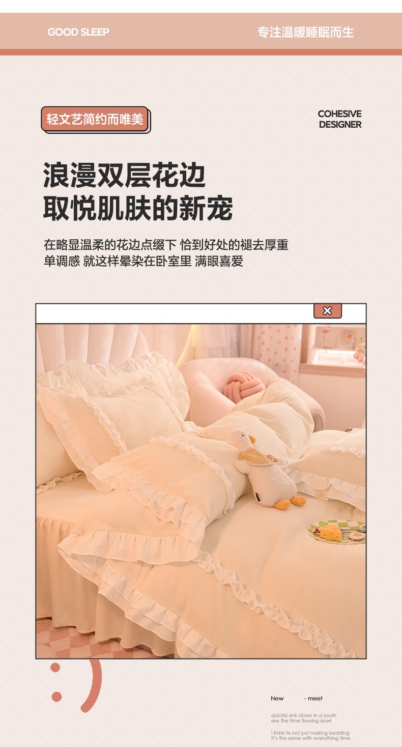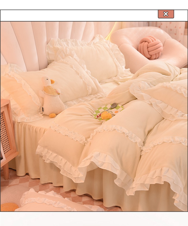 当前位置: 91家纺网 > 商品网购 > 床品套件 > 四件套 > 牛奶绒四件套 > 逸尚阁-2022新款双层花边牛奶绒四件套件套 唯美-温馨黄