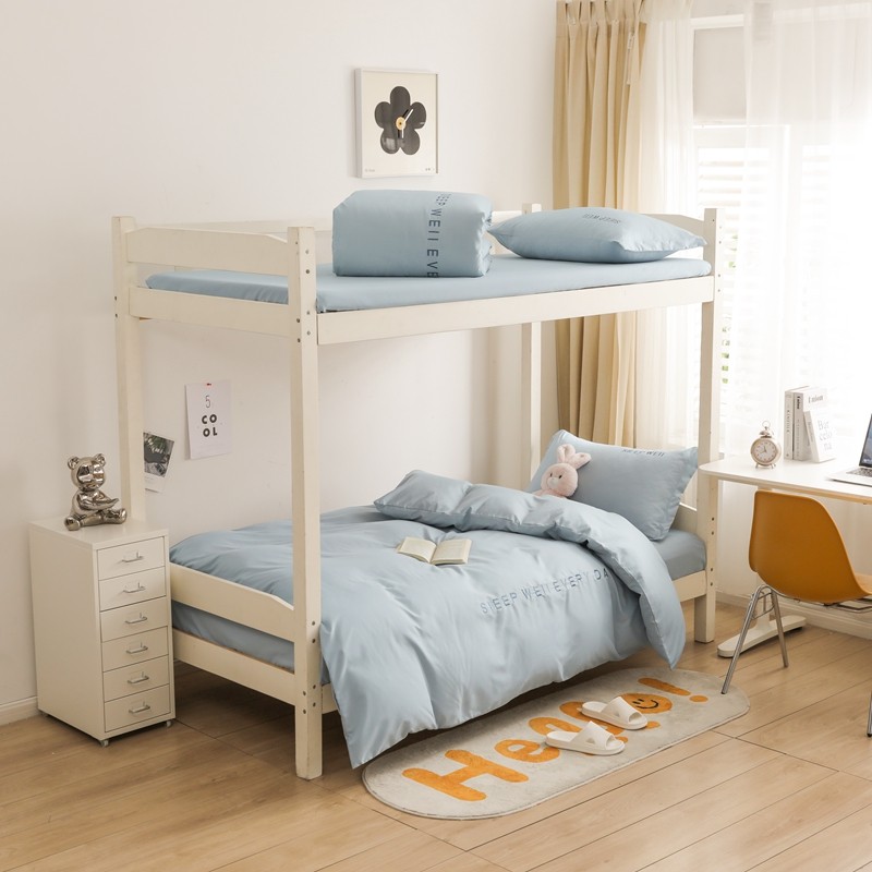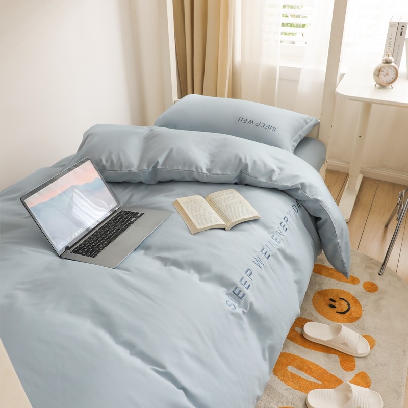 啊雅家居纯色水洗磨毛亲肤绣花床单款床笠款学生三套件 奶兰灰