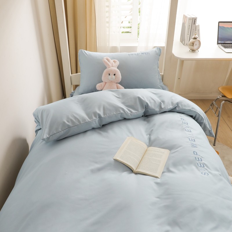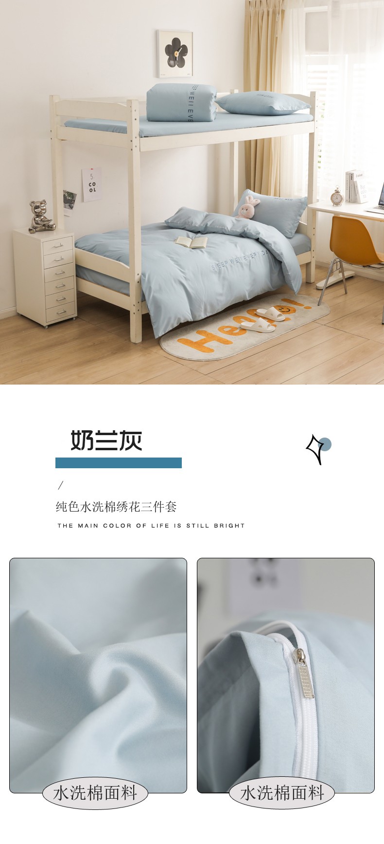 商品名称:啊雅家居纯色水洗磨毛亲肤绣花床单款床笠款学生三套件 奶兰灰
