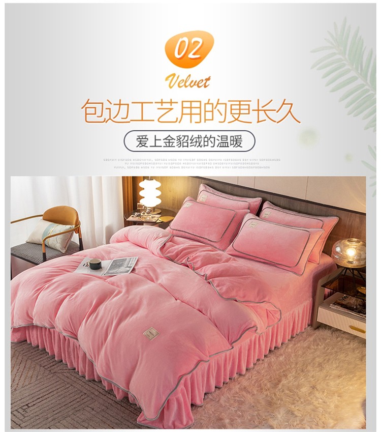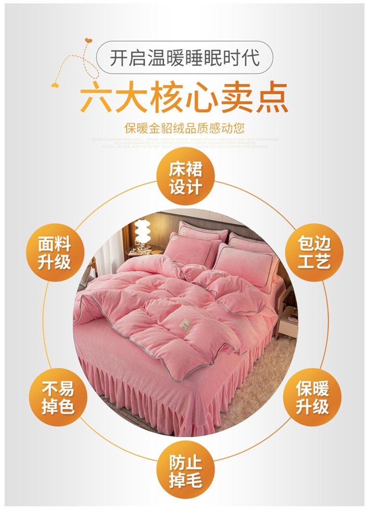商品名称:能好家纺 2022直播爆款牛奶绒金貂绒四件套 粉玉