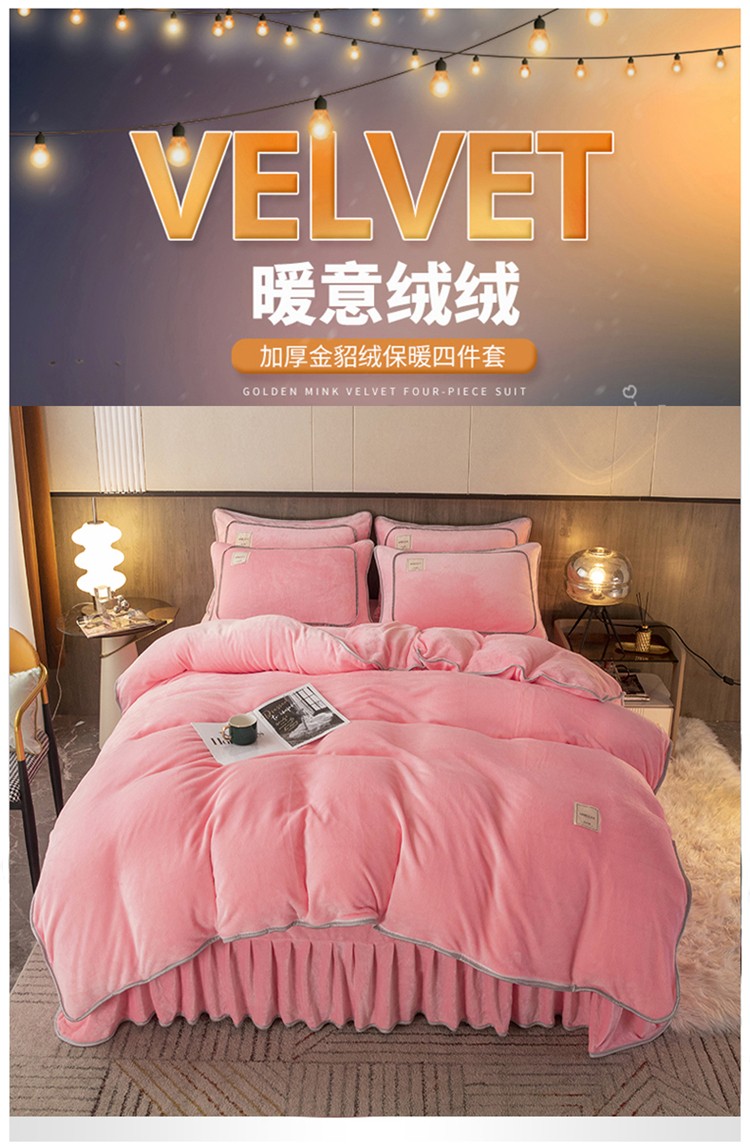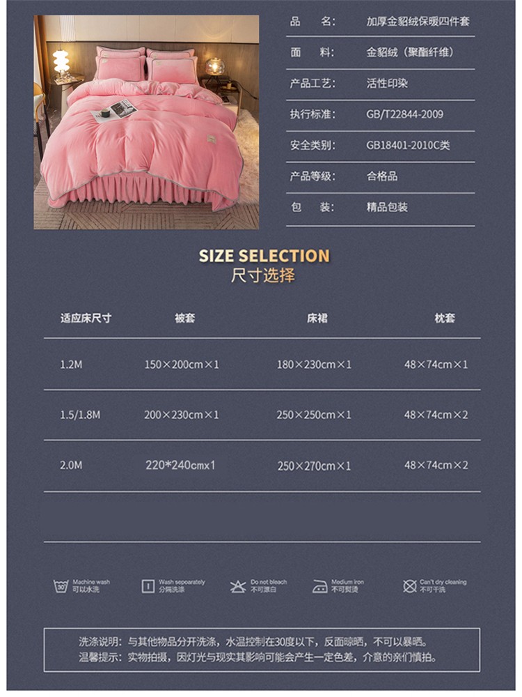 (总)能好家纺 2025新款亲肤舒适水晶绒夹棉床裙款系列四件套,藏青,豆沙,粉玉,灰,酒红,墨绿,月光蓝,宝石兰