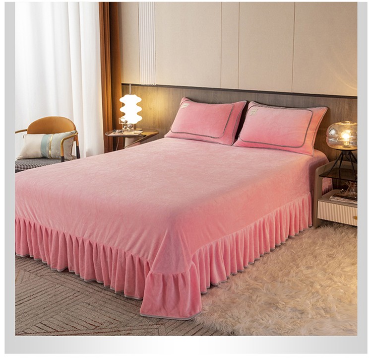 (总)能好家纺 2025新款蕾丝工艺水晶绒夹棉床裙,宝石兰,藏青,豆沙,粉玉,灰,酒红,墨绿,月光蓝