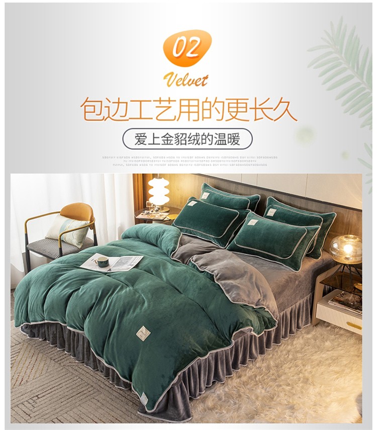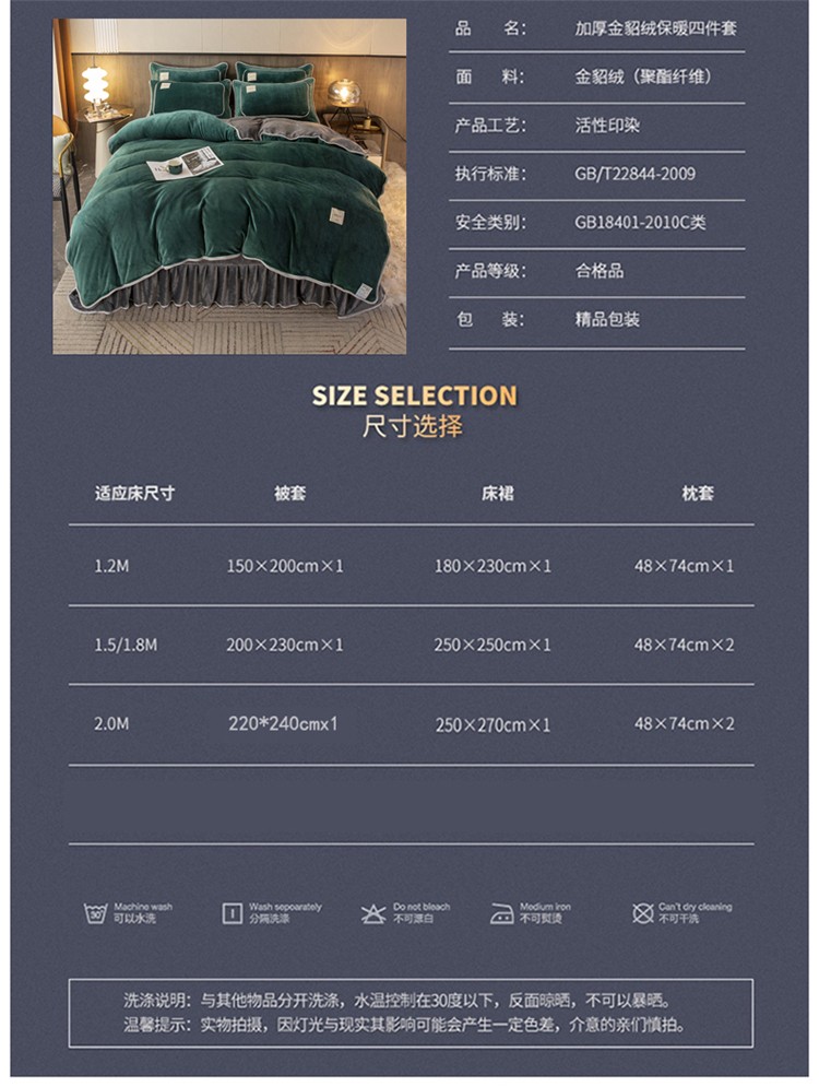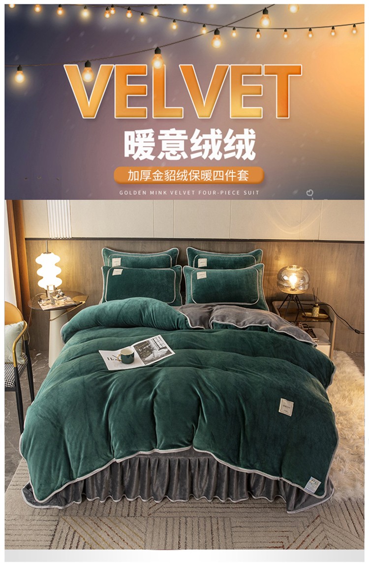 (总)能好家纺 2025新款亲肤舒适水晶绒夹棉床裙款系列四件套,藏青,豆沙,粉玉,灰,酒红,墨绿,月光蓝,宝石兰
