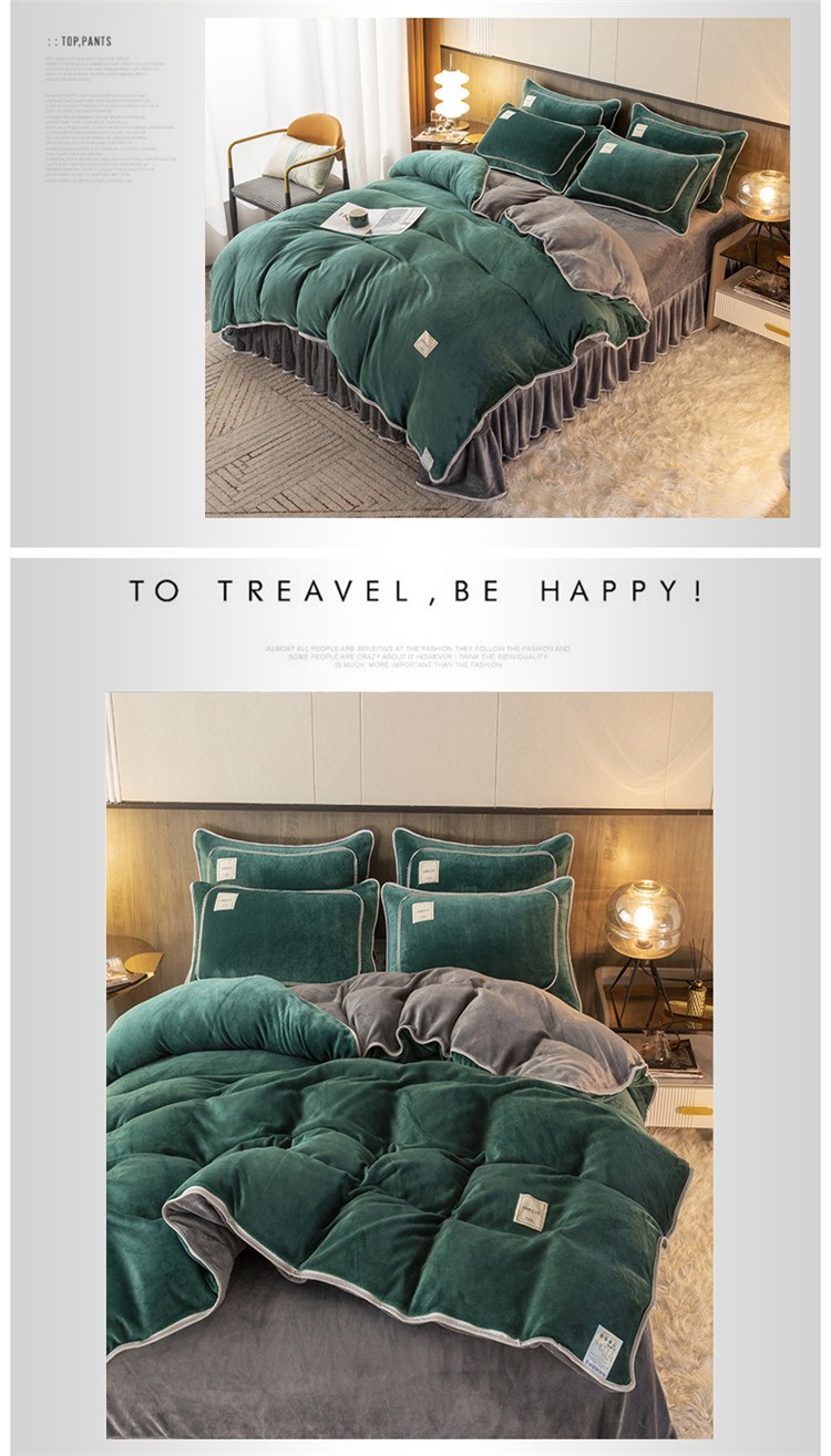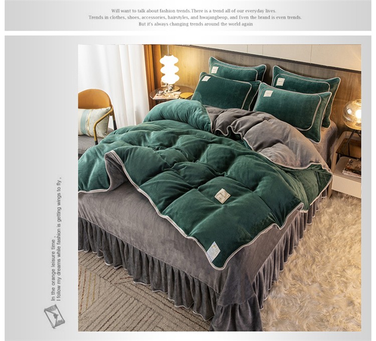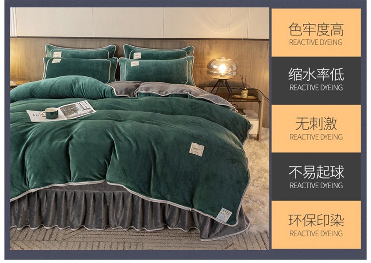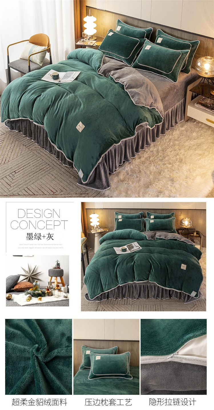 商品名称:能好家纺 2022直播爆款牛奶绒金貂绒四件套 墨绿+灰