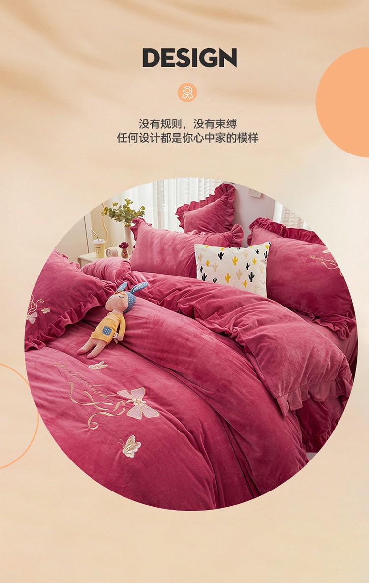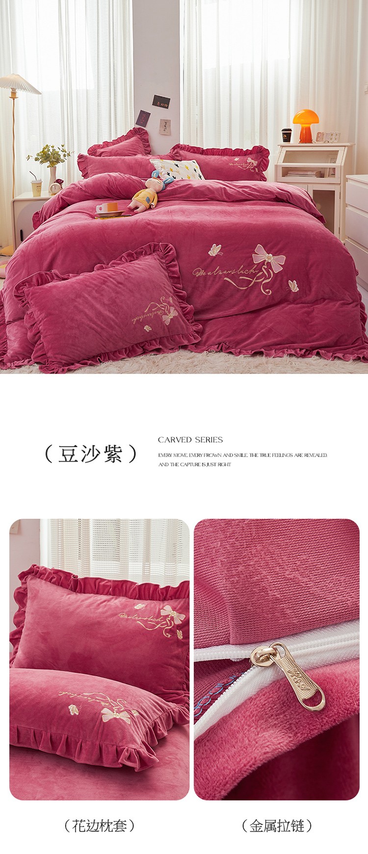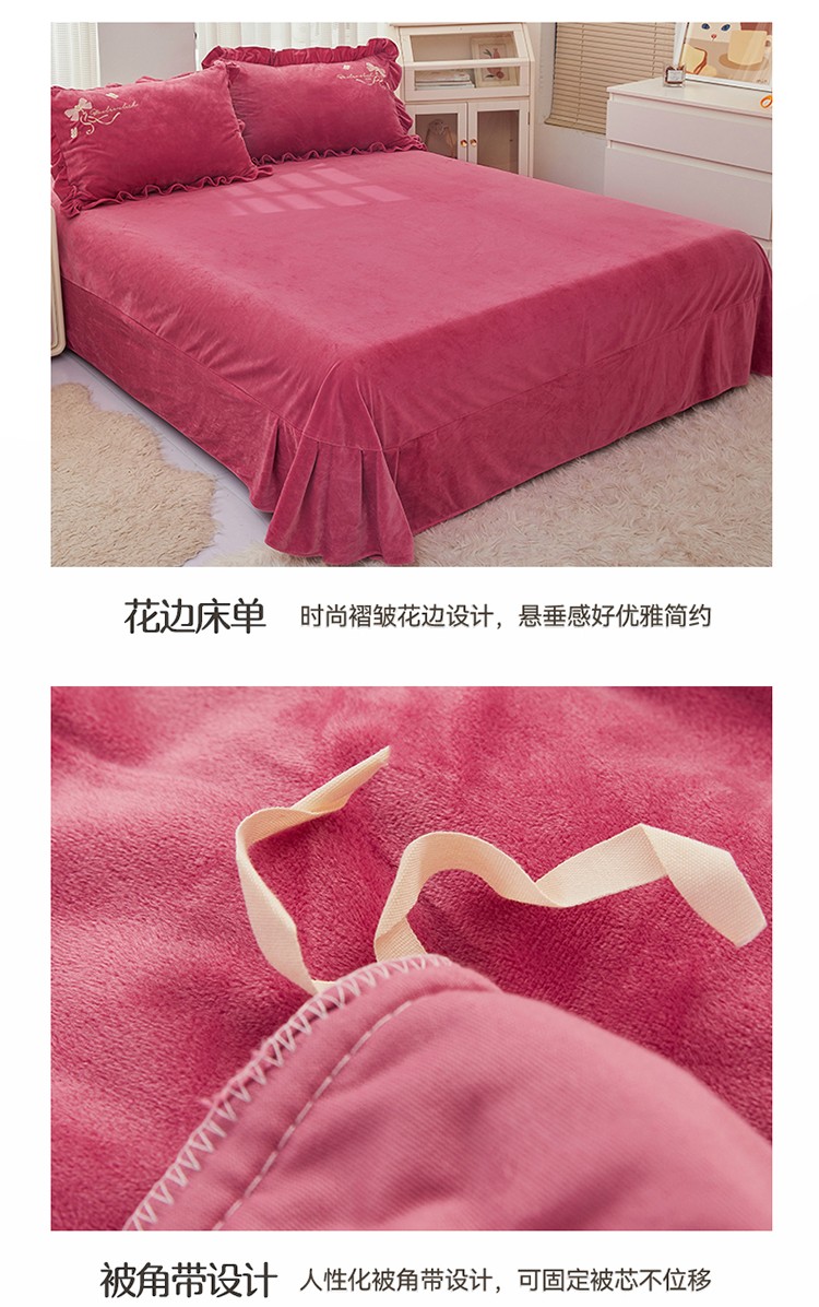 (总)恒爱 2022秋冬水晶绒翩翩花舞夹棉床裙四件套,大红色,豆沙红,橄榄绿,公主粉,桔色,咖啡色,孔雀绿,拉菲红,罗兰紫,玫红色,美人玉,米白色,米驼色,抹茶绿,浅灰色,紫色