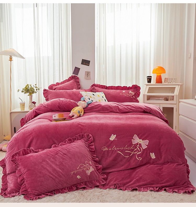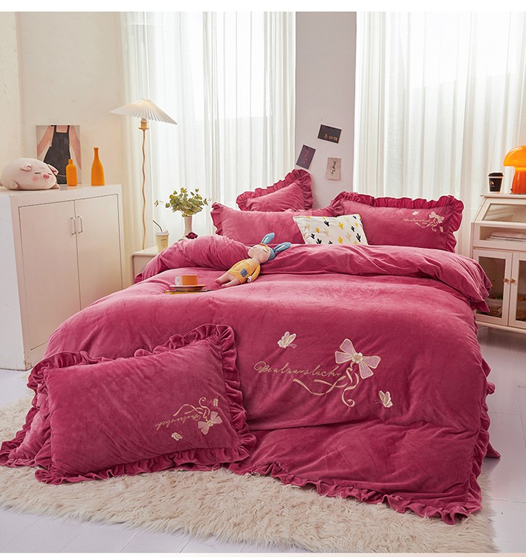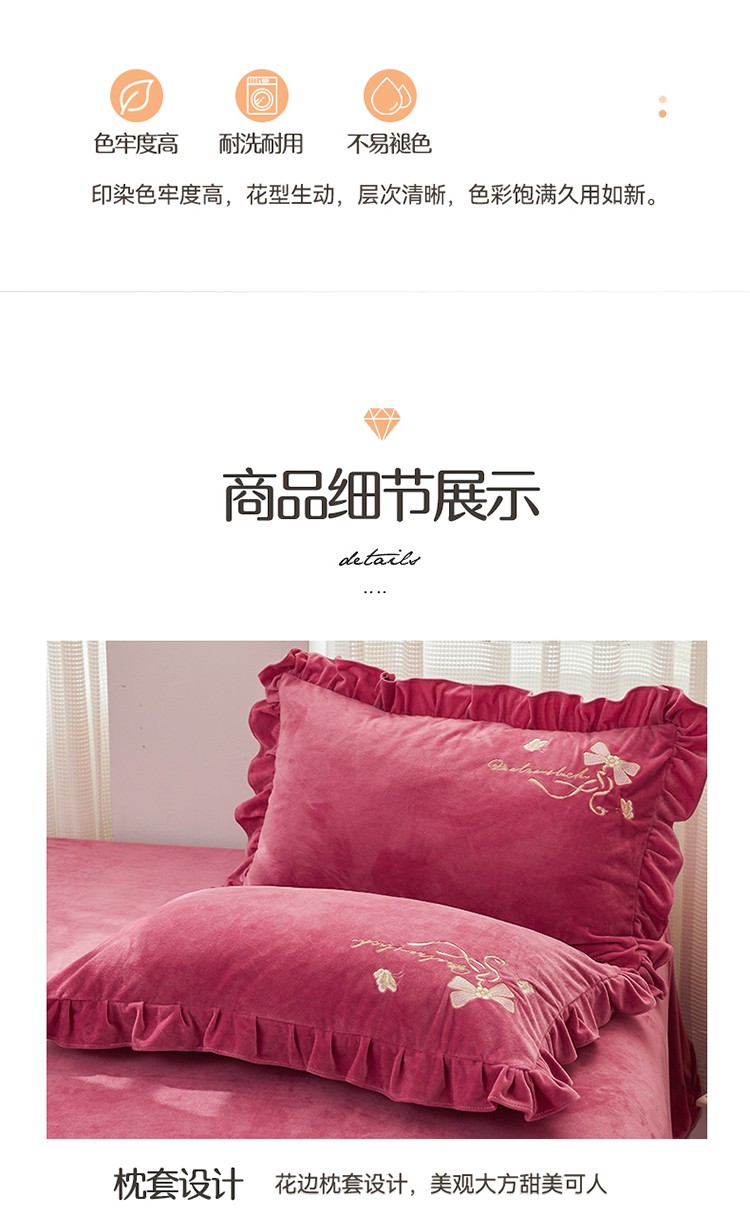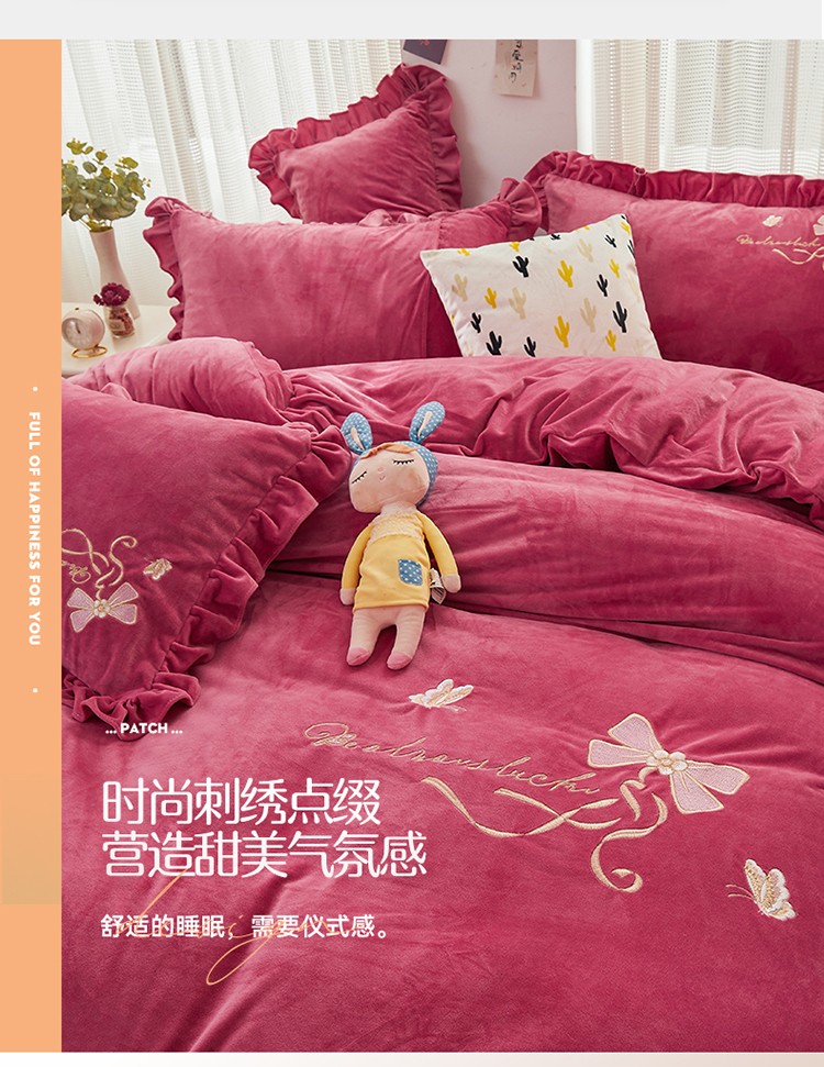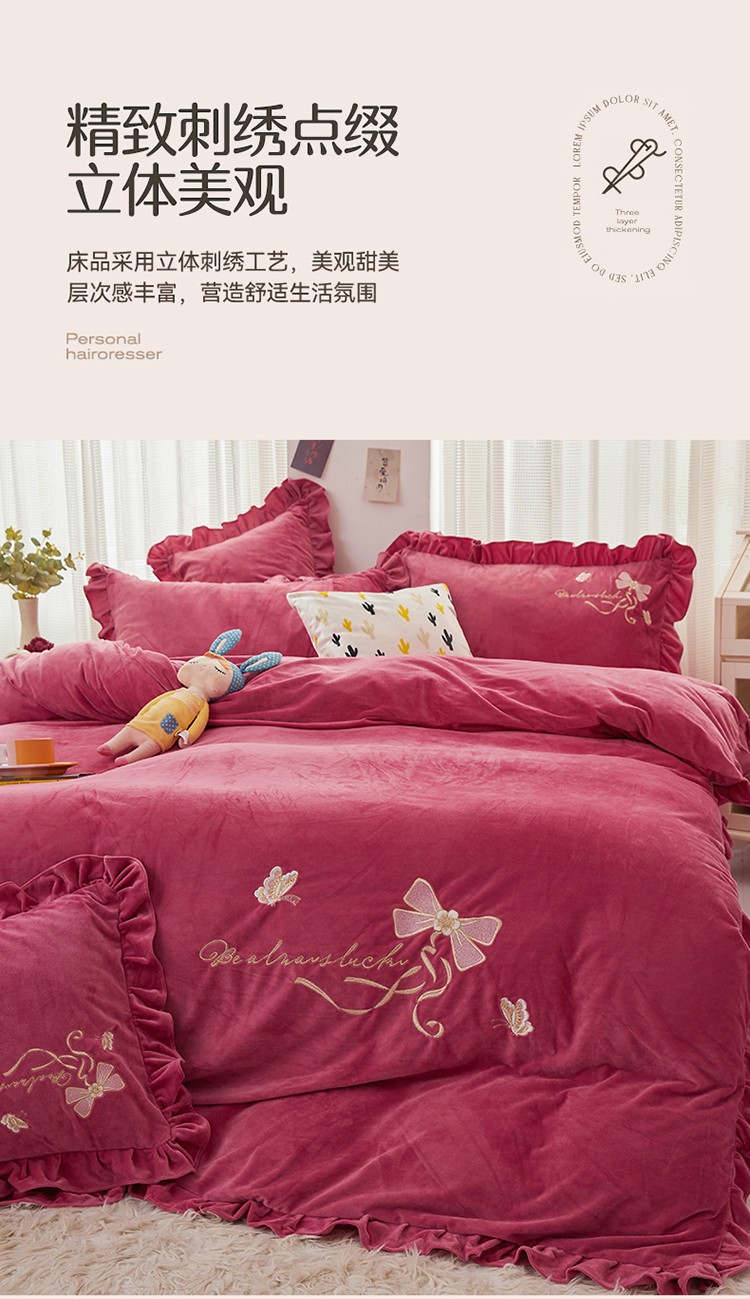 (总)恒爱 2022秋冬水晶绒翩翩花舞夹棉床裙四件套,大红色,豆沙红,橄榄绿,公主粉,桔色,咖啡色,孔雀绿,拉菲红,罗兰紫,玫红色,美人玉,米白色,米驼色,抹茶绿,浅灰色,紫色