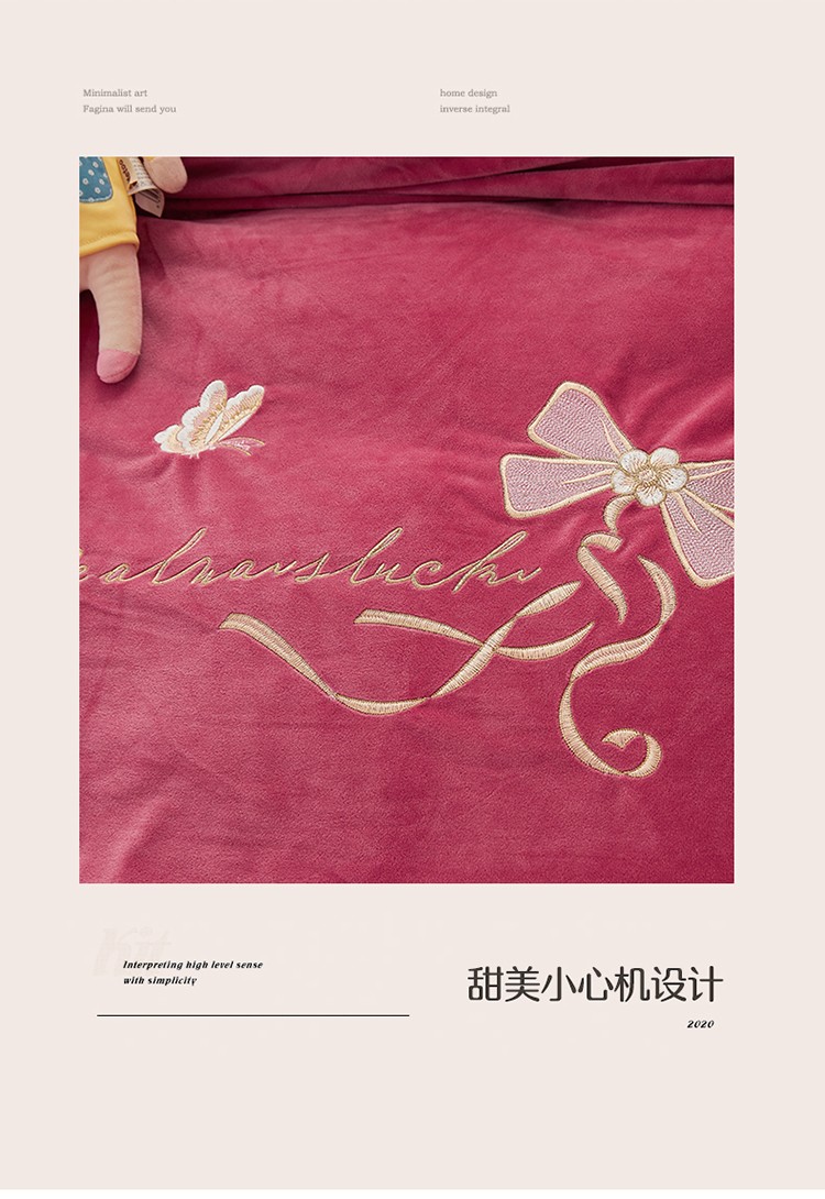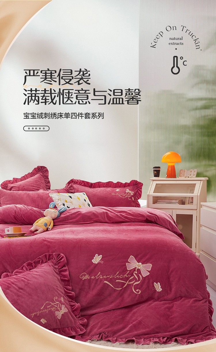 商品名称:恒爱 2022秋冬新款A类宝宝绒蝴蝶结刺绣床单款四件套 豆沙紫