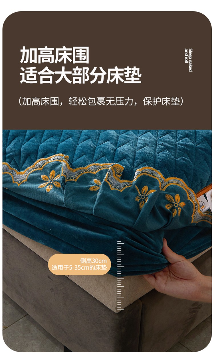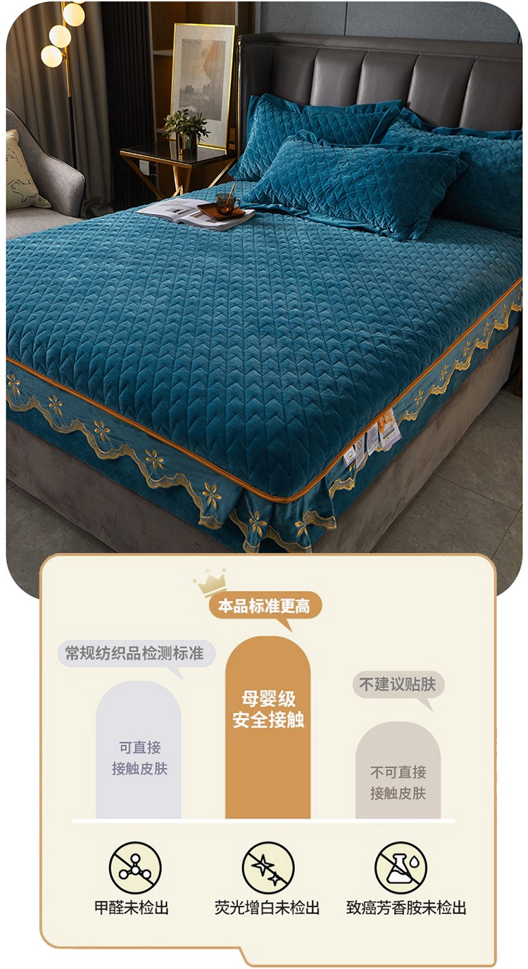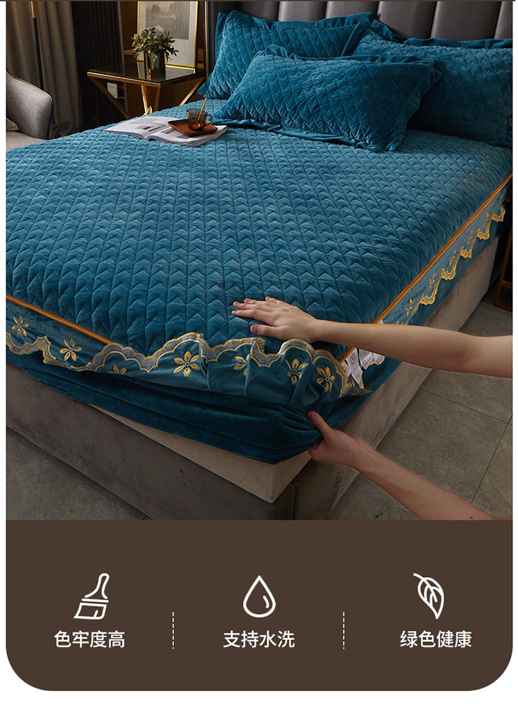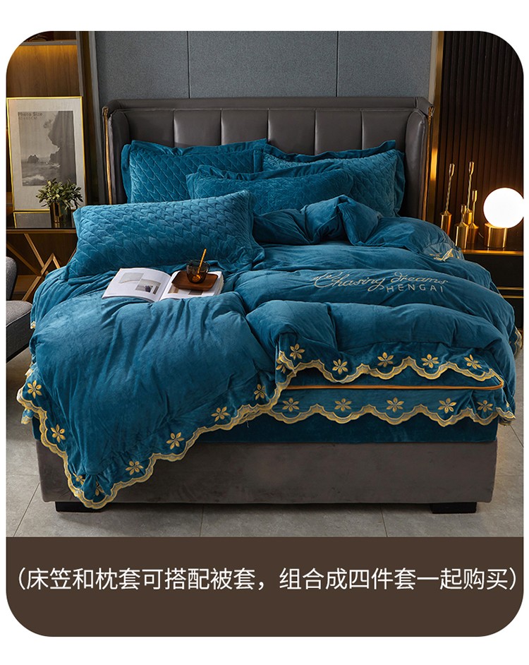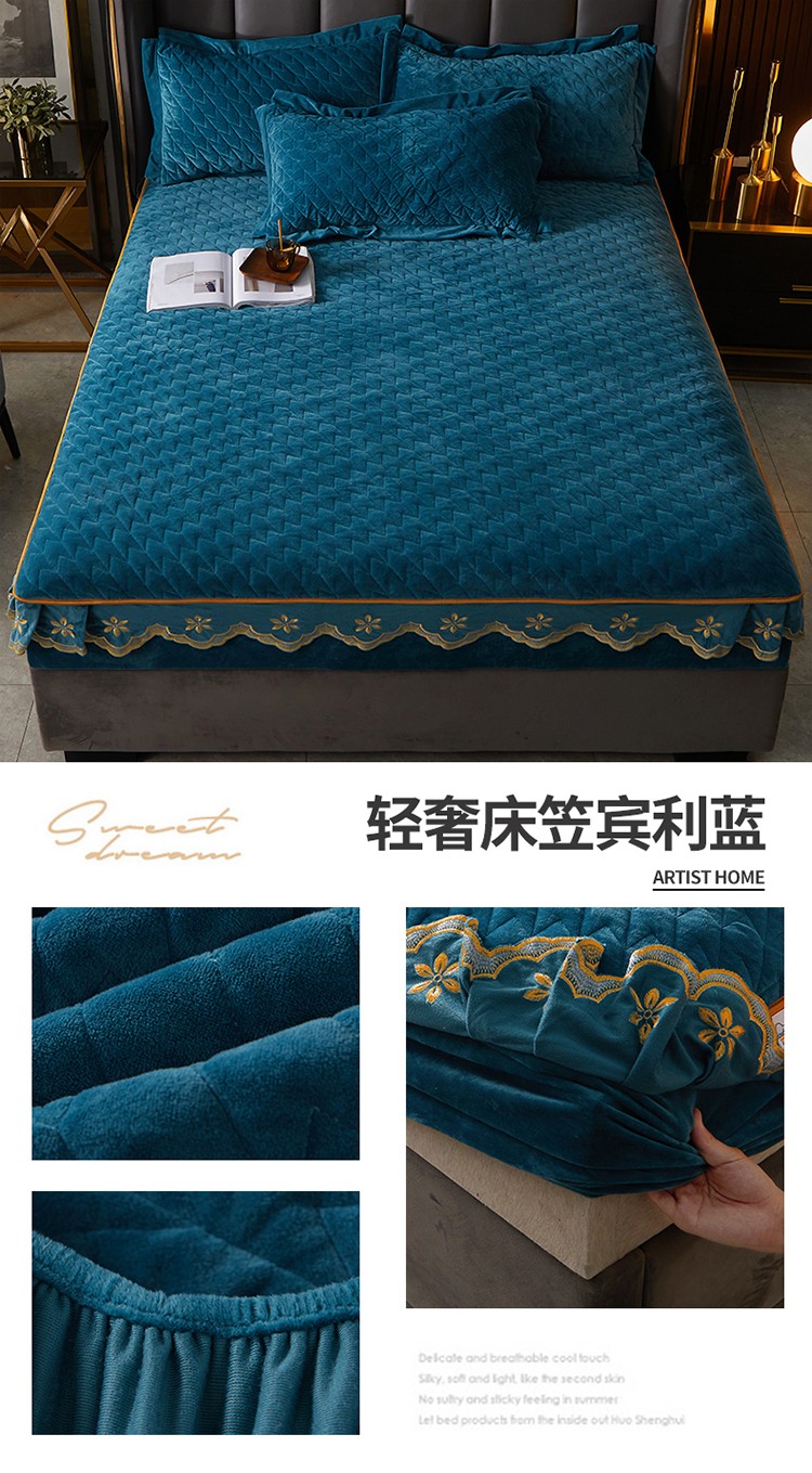• 91家纺网 家纺一手货源 找家纺 恒爱 2022秋冬新款A类宝宝绒轻奢刺绣床笠 轻奢床笠宾利蓝