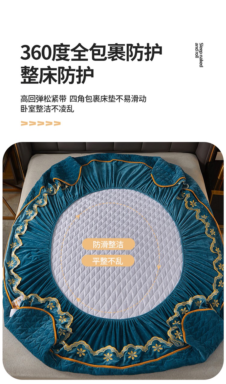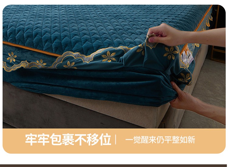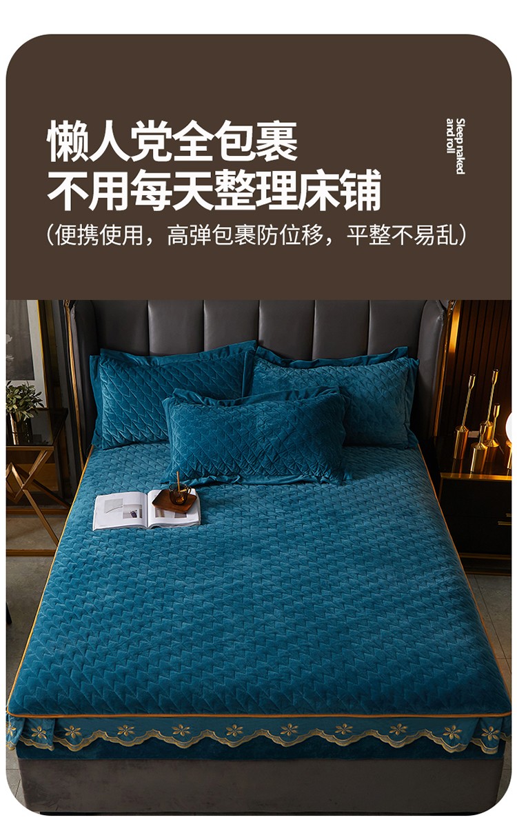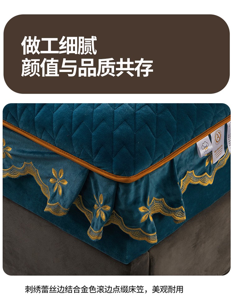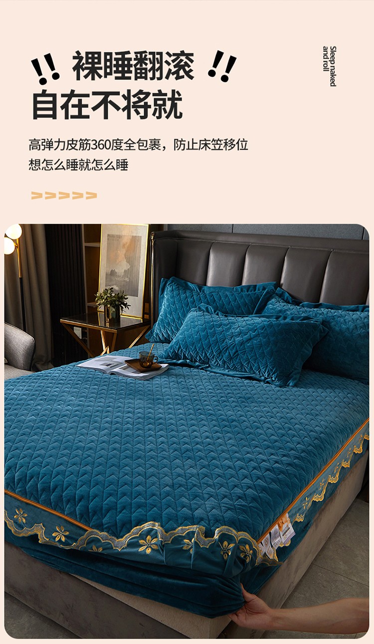 • 91家纺网 家纺一手货源 找家纺 恒爱 2022秋冬新款A类宝宝绒轻奢刺绣床笠 轻奢床笠宾利蓝