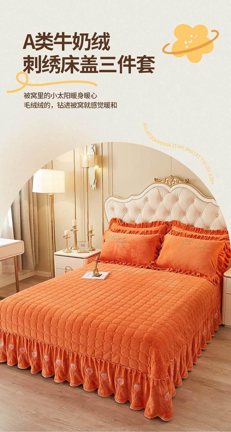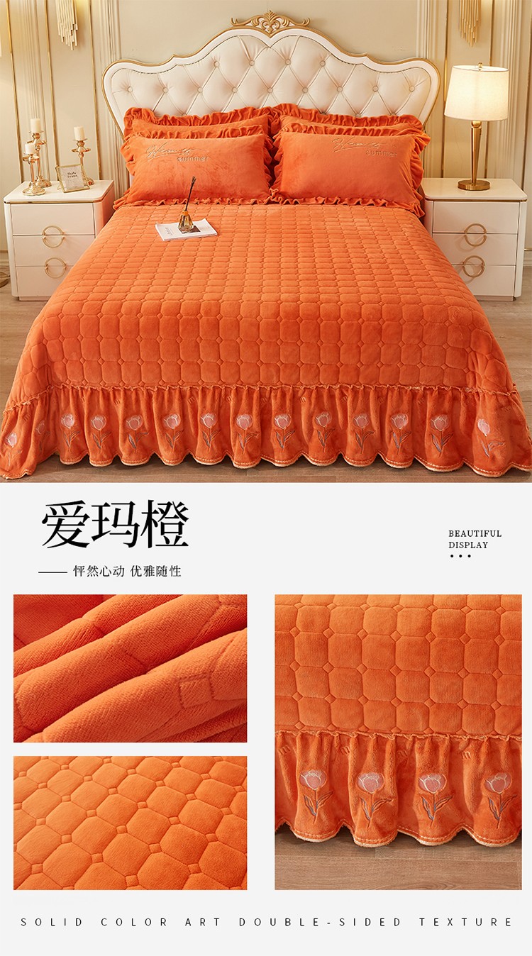 (总)恒爱 2022新款秋冬轻奢宝宝绒刺绣单床裙,爱玛橙,宾利蓝,豆沙红,橄榄绿,高级灰,酒红,梦想粉,浅灰蓝,温馨粉,喜庆红,香妃粉,香芋紫