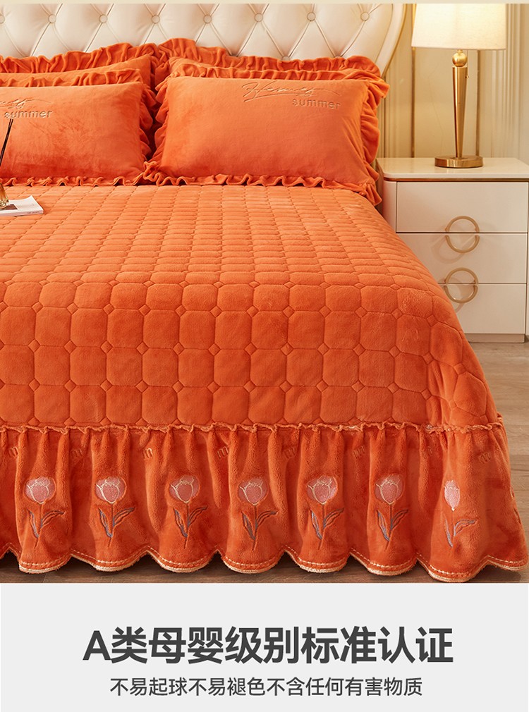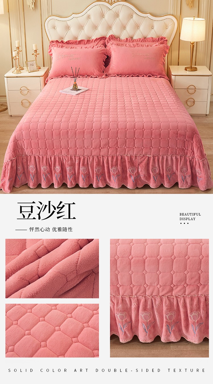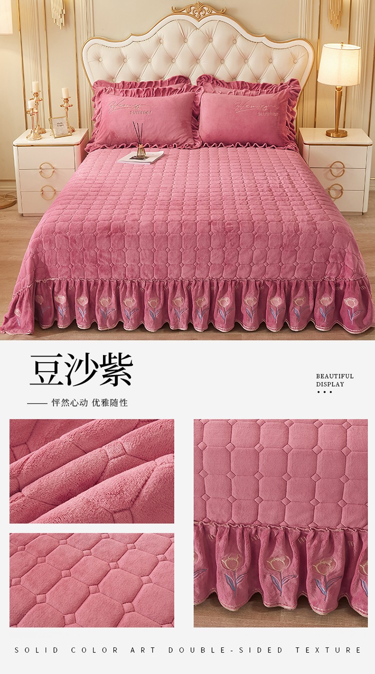 (总)恒爱 2022秋冬水晶绒翩翩花舞夹棉单床裙,大红色,豆沙红,橄榄绿,公主粉,桔色,咖啡色,孔雀绿,拉菲红,罗兰紫,玫红色,美人玉,米白色,米驼色,抹茶绿,浅灰色,紫色