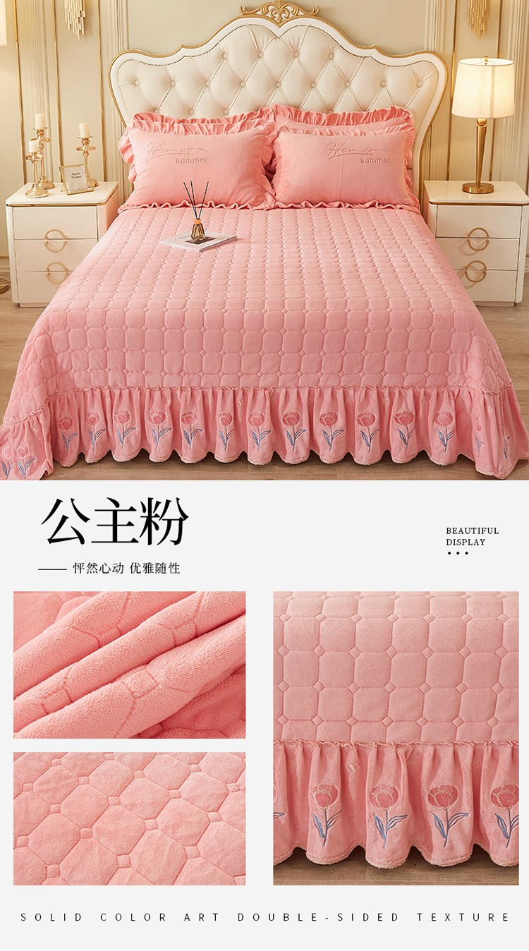 (总)恒爱家纺 2025新款牛奶绒贴布绣夹棉床裙四件套,豆沙红,浪漫紫,天空蓝,温馨粉,象牙白