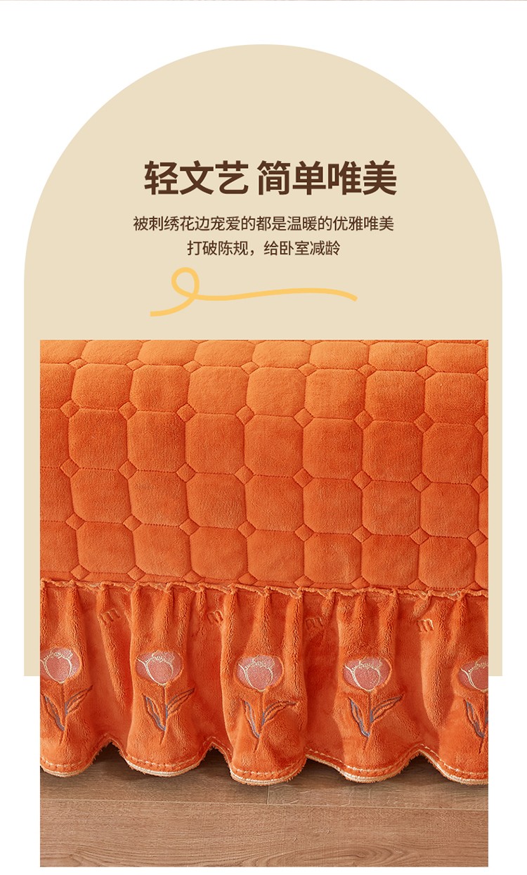 (总)恒爱 2022秋冬水晶绒翩翩花舞夹棉单床裙,大红色,豆沙红,橄榄绿,公主粉,桔色,咖啡色,孔雀绿,拉菲红,罗兰紫,玫红色,美人玉,米白色,米驼色,抹茶绿,浅灰色,紫色