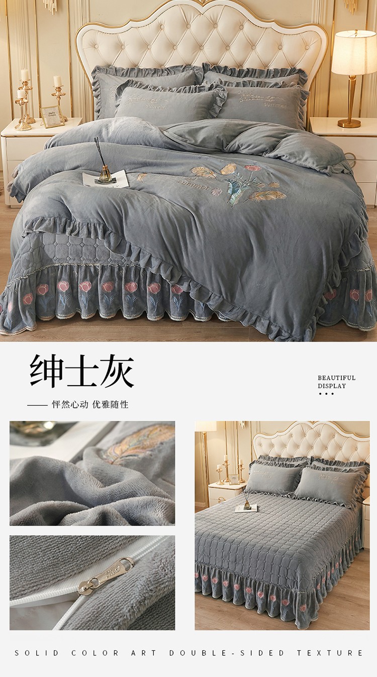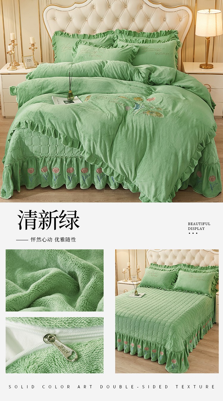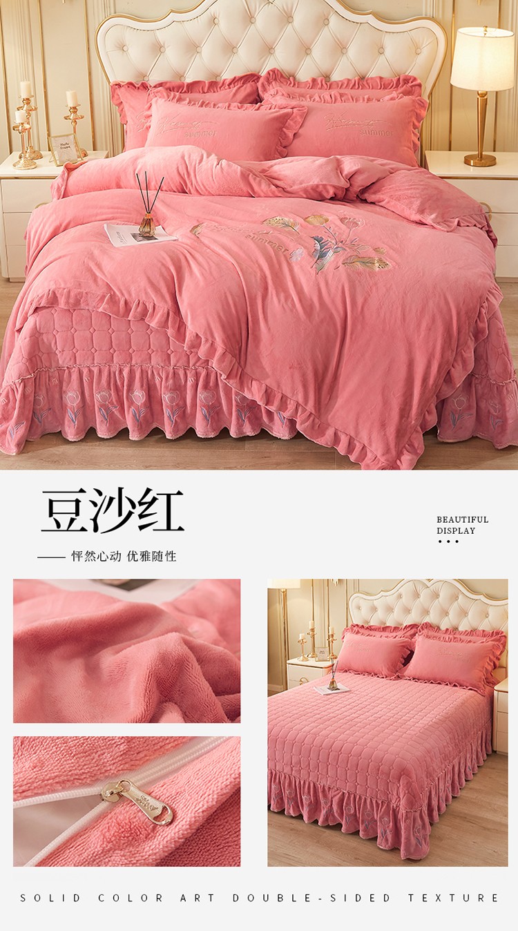 (总)恒爱 2022秋冬水晶绒翩翩花舞夹棉床裙四件套,大红色,豆沙红,橄榄绿,公主粉,桔色,咖啡色,孔雀绿,拉菲红,罗兰紫,玫红色,美人玉,米白色,米驼色,抹茶绿,浅灰色,紫色