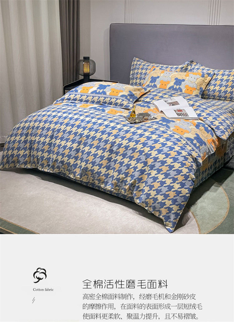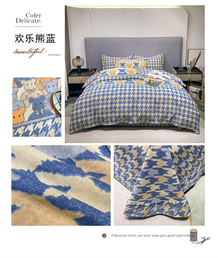当前位置: 91家纺网 > 商品网购 > 床品套件 > 四件套 > 磨毛活性四件套 > 2022 活性全棉磨毛四件套印花纯棉床单床笠款多规格欢乐熊蓝