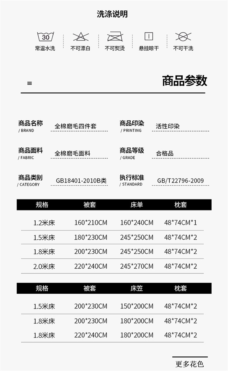 1.8米床笠加大被套款四件套(220*240cm) | ¥100.00 |