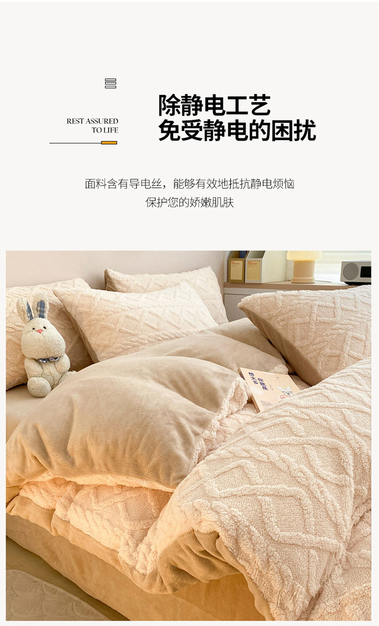 金爱家 2023新款塔芙绒牛奶绒防静电四件套 塔芙绒-奶油米