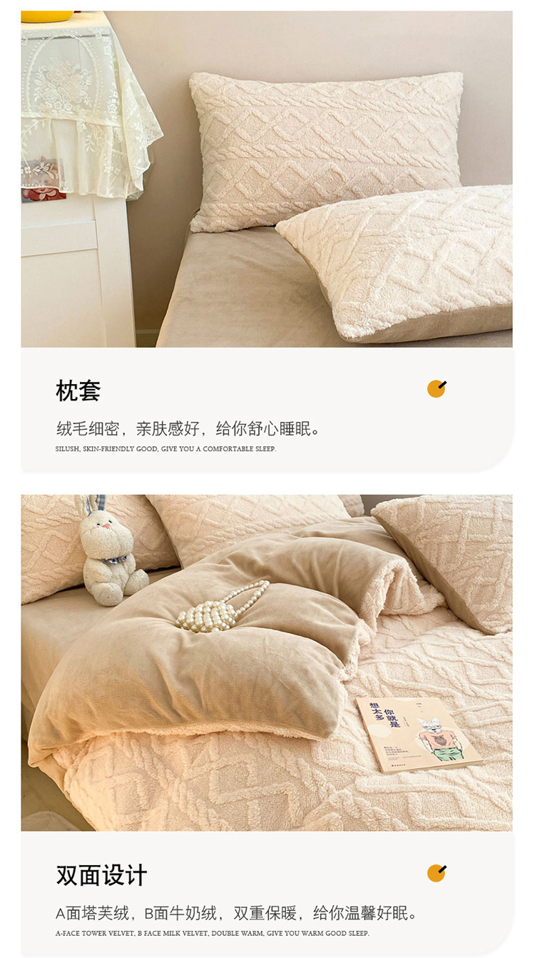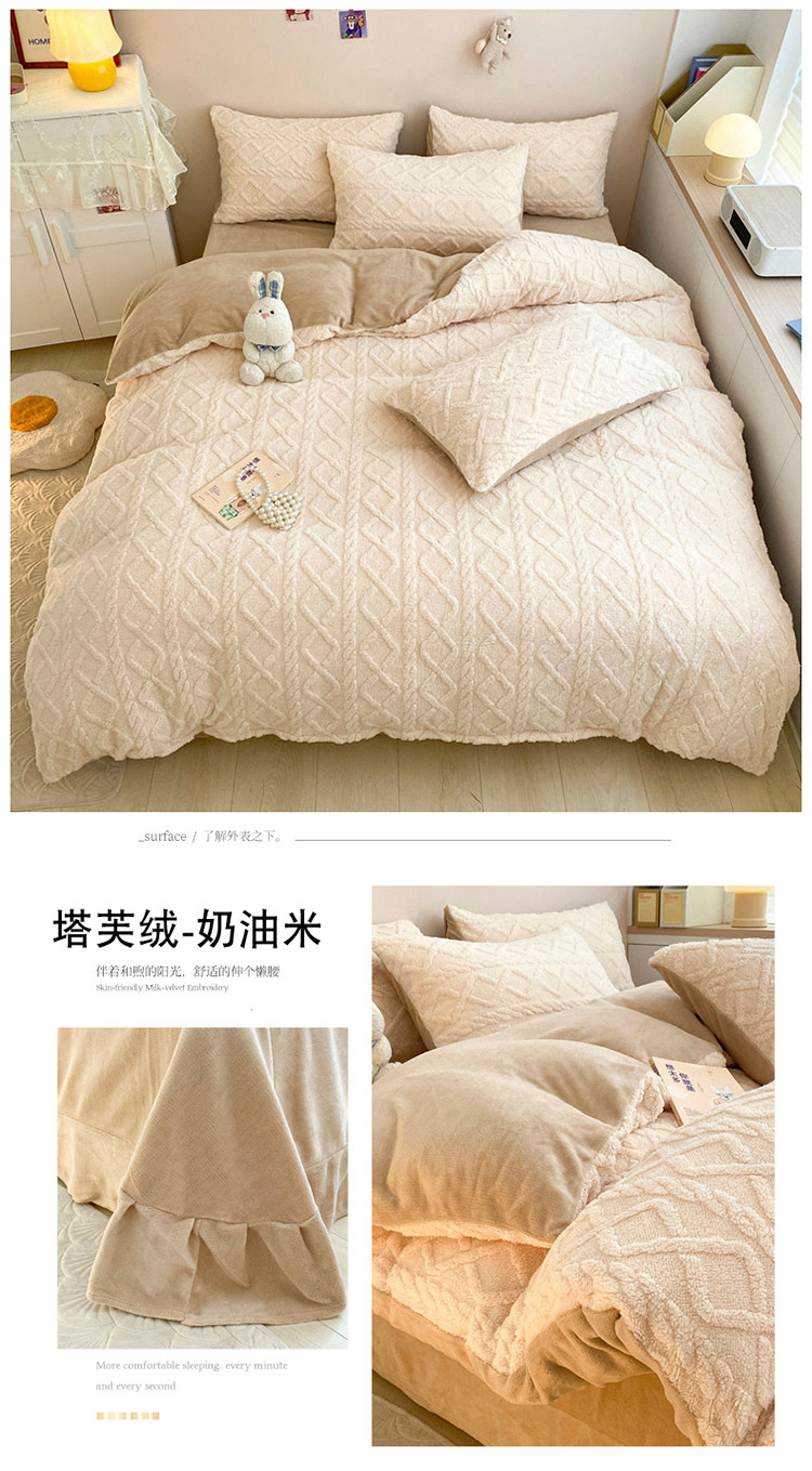 商品名称:金爱家 2023新款塔芙绒牛奶绒防静电四件套 塔芙绒-奶油米